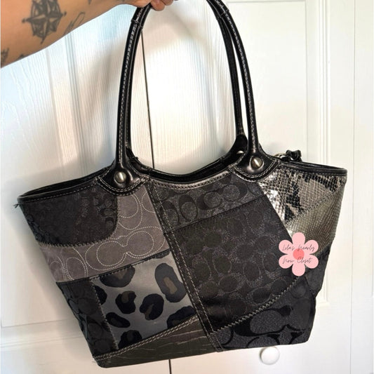 y2k Coach Patchwork Tote Shoulder Handbag Purse Grey Silver Black 12899