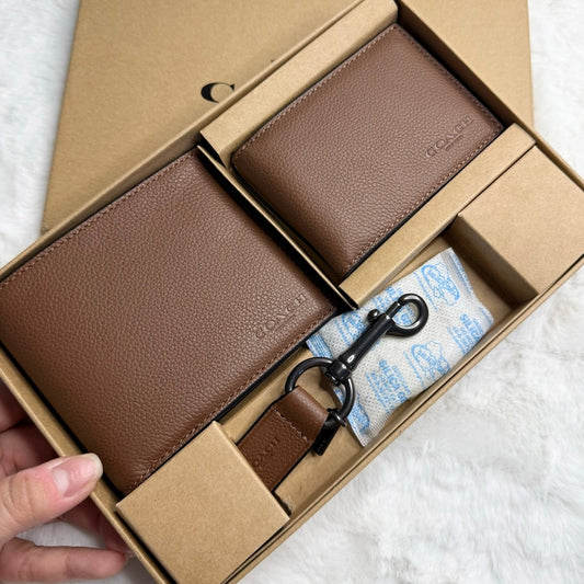 NIB / NWT COACH Men Unisex Brown Gift Set of 3 Wallets Keychain
