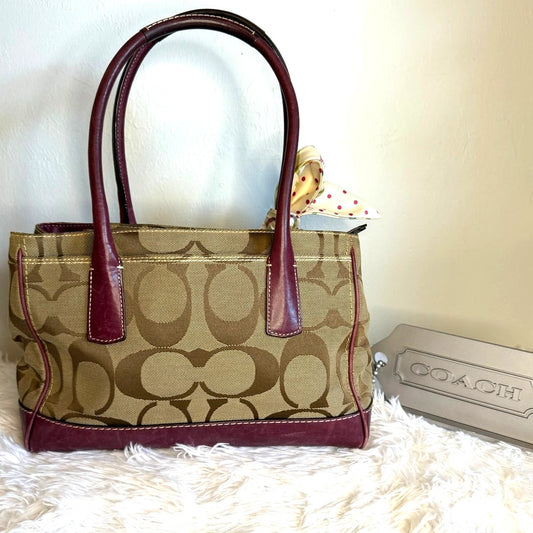 COACH 2010 Madeline Turnlock Signature Purple Brown Shoulder Bag Tote