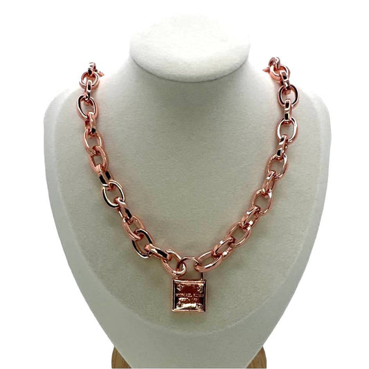 MICHAEL KORS Est 1981 Rose Gold-tone Padlock Pendant Chain Necklace