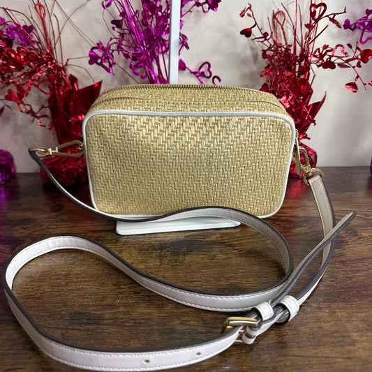 MICHAEL KORS Kenly Double Zip Natural Straw Small Camera Crossbody
