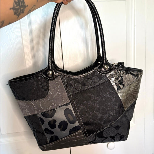 y2k Coach Patchwork Tote Shoulder Handbag Purse Grey Silver Black 12899