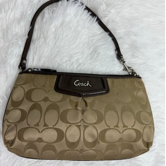y2k COACH Silver Metallic Tan Wristlet Mini Purse
