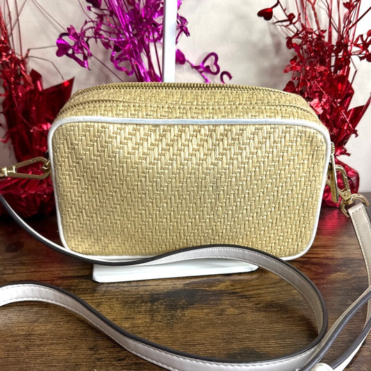 MICHAEL KORS Kenly Double Zip Natural Straw Small Camera Crossbody
