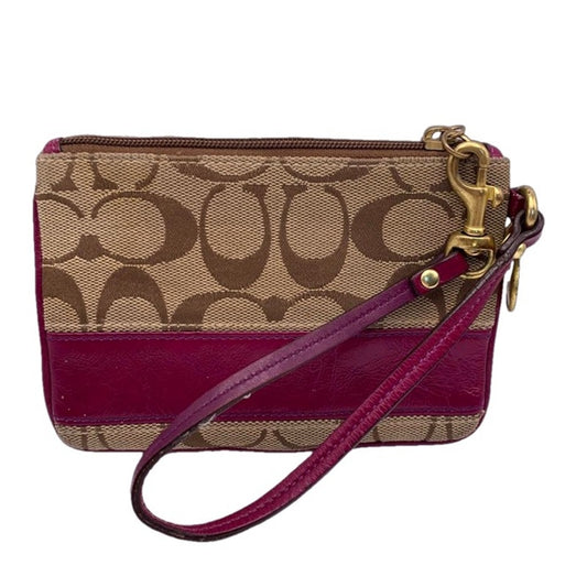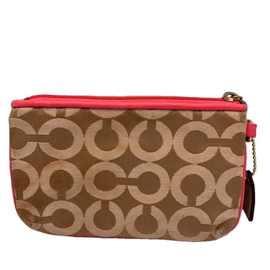 COACH Pink Tan Signature Canvas Wristlet