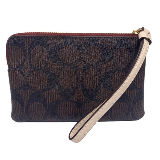 COACH Brown Coated Canvas Wristlet