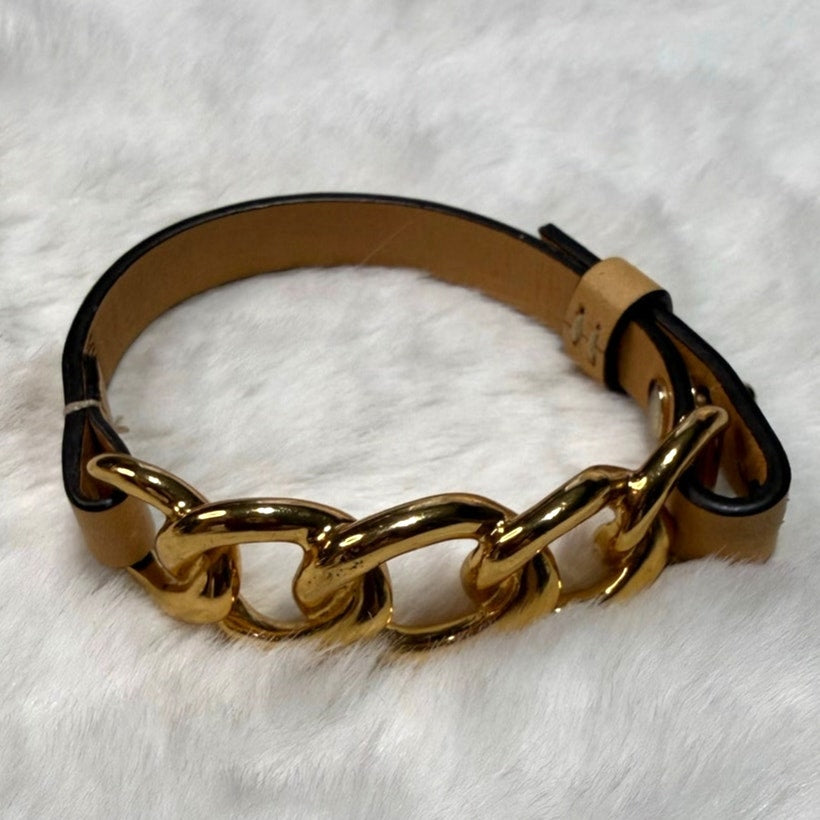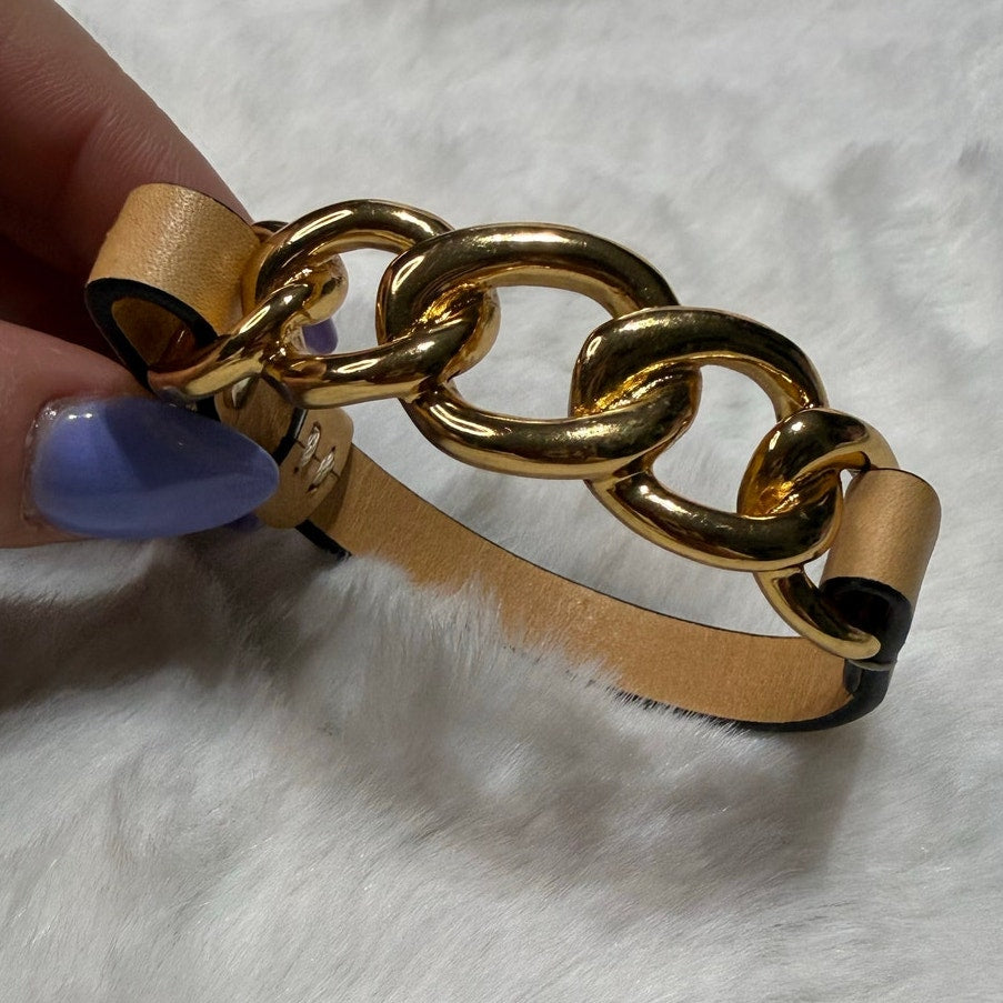 Coach Gold Chain Leather Bracelet