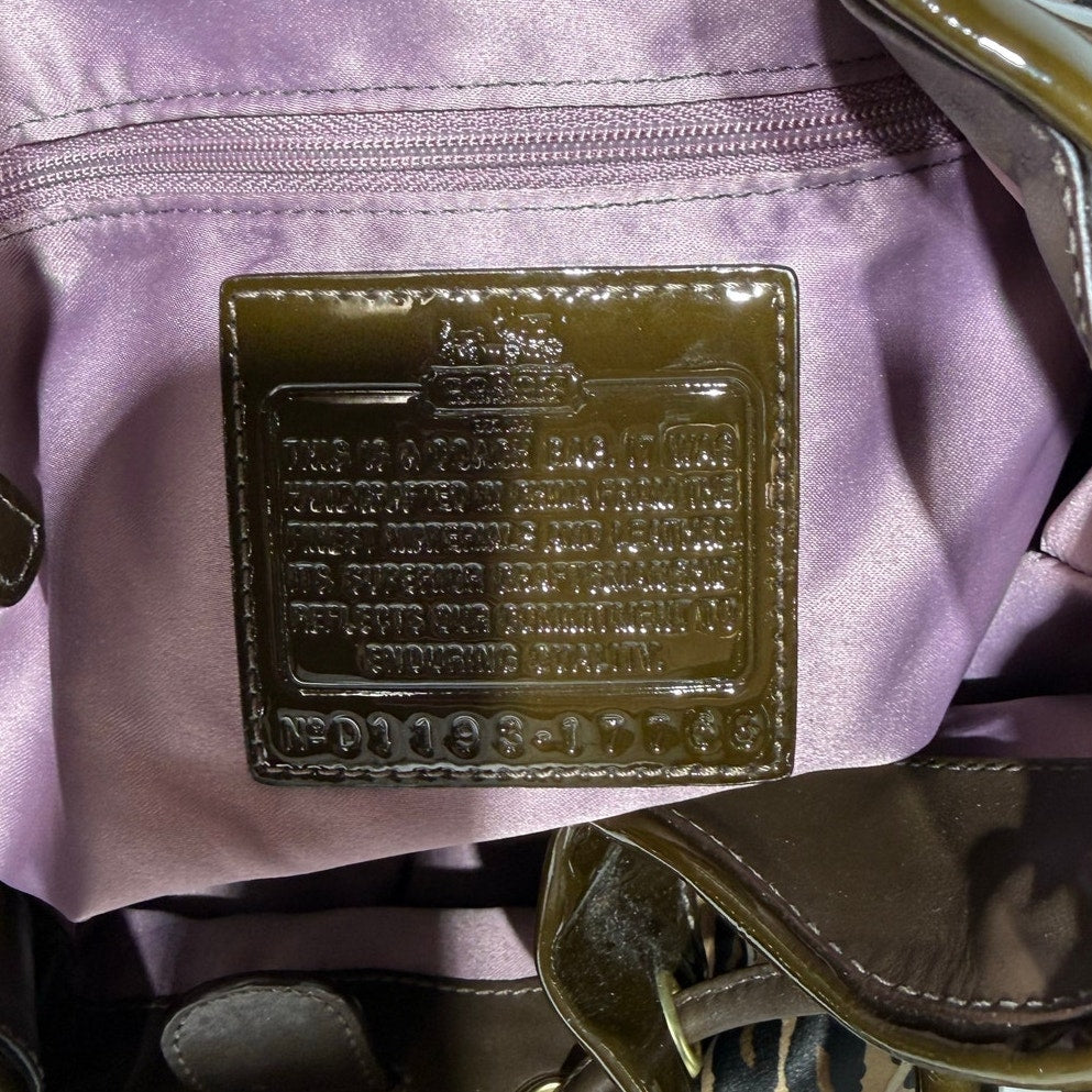 Coach Madison Ocelot OP Art Marielle Patent Leather Trim Bucket Drawstring Bag