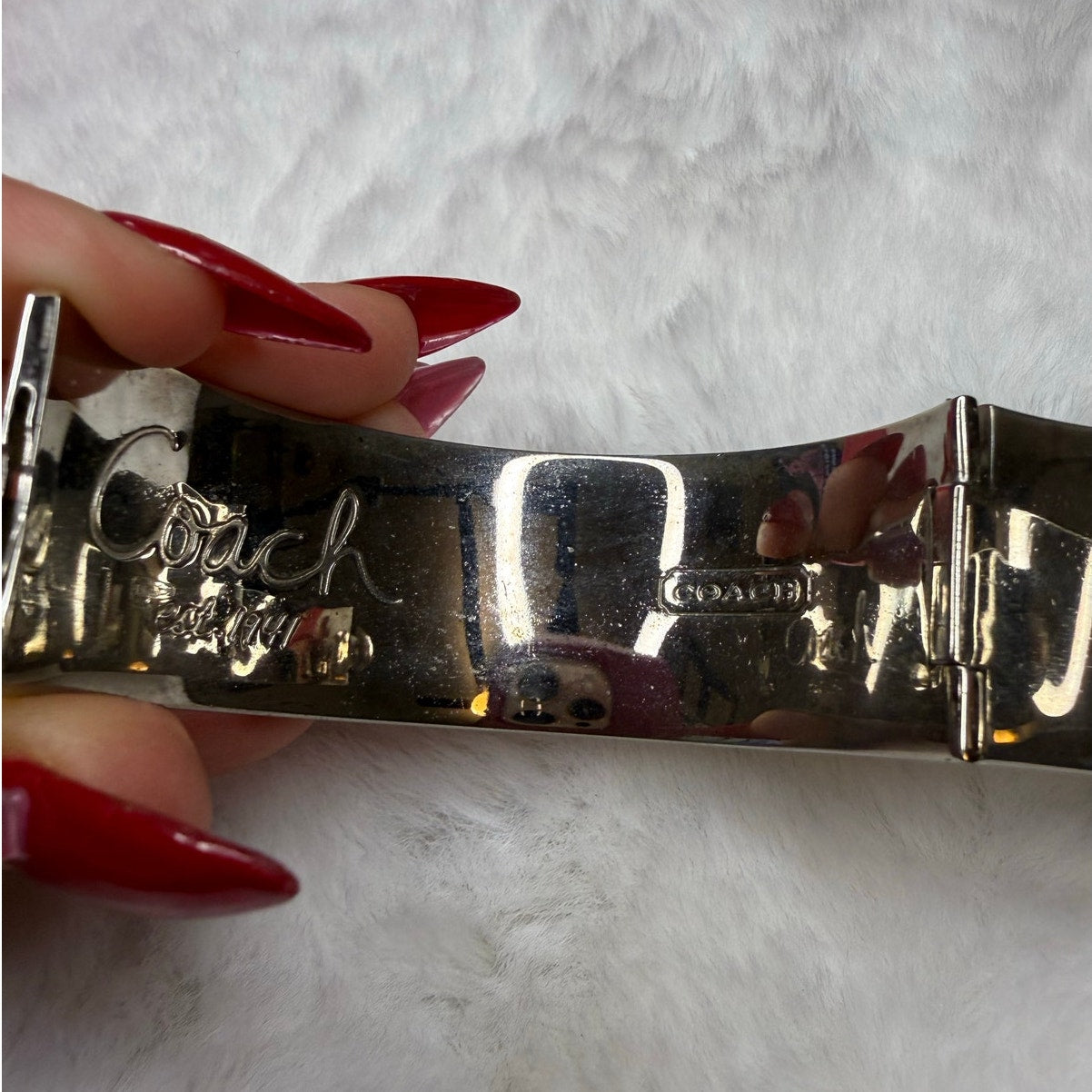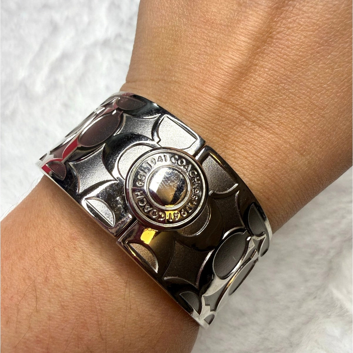 Coach Silver Logo Enamel Metal Bangle Bracelet