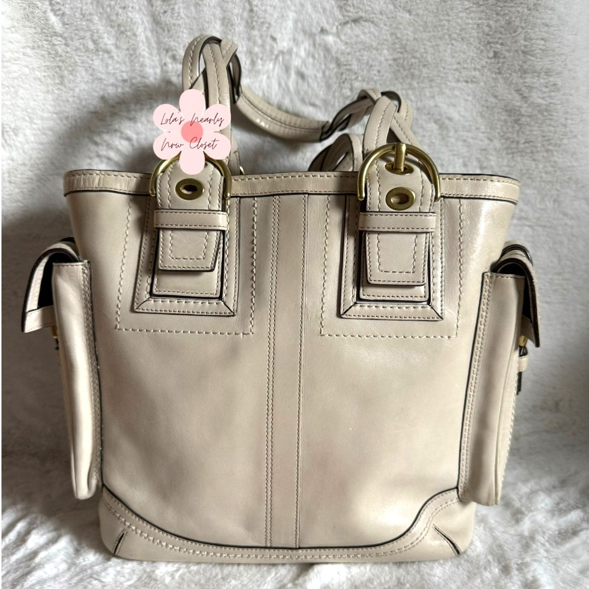 Coach SOHO Cream Leather LG Pocket Tote Bag Satchel 10049