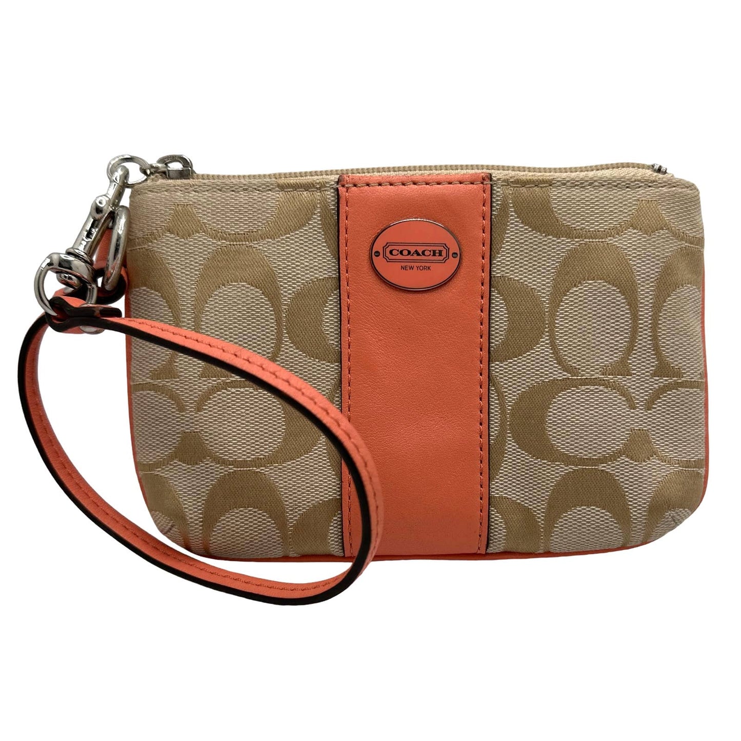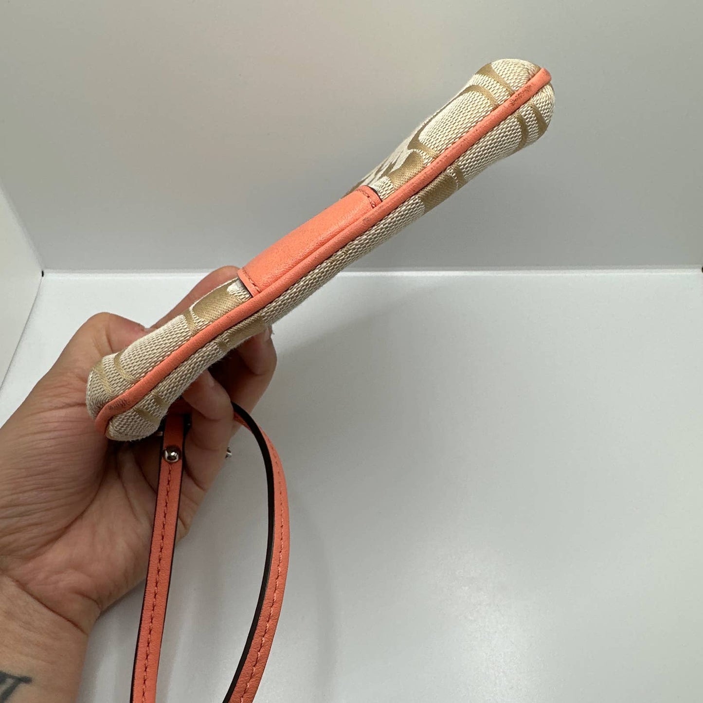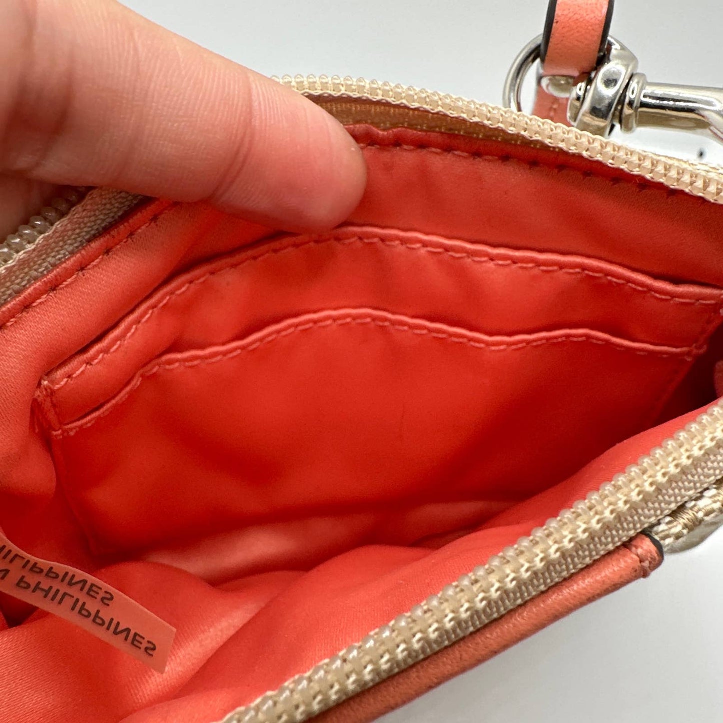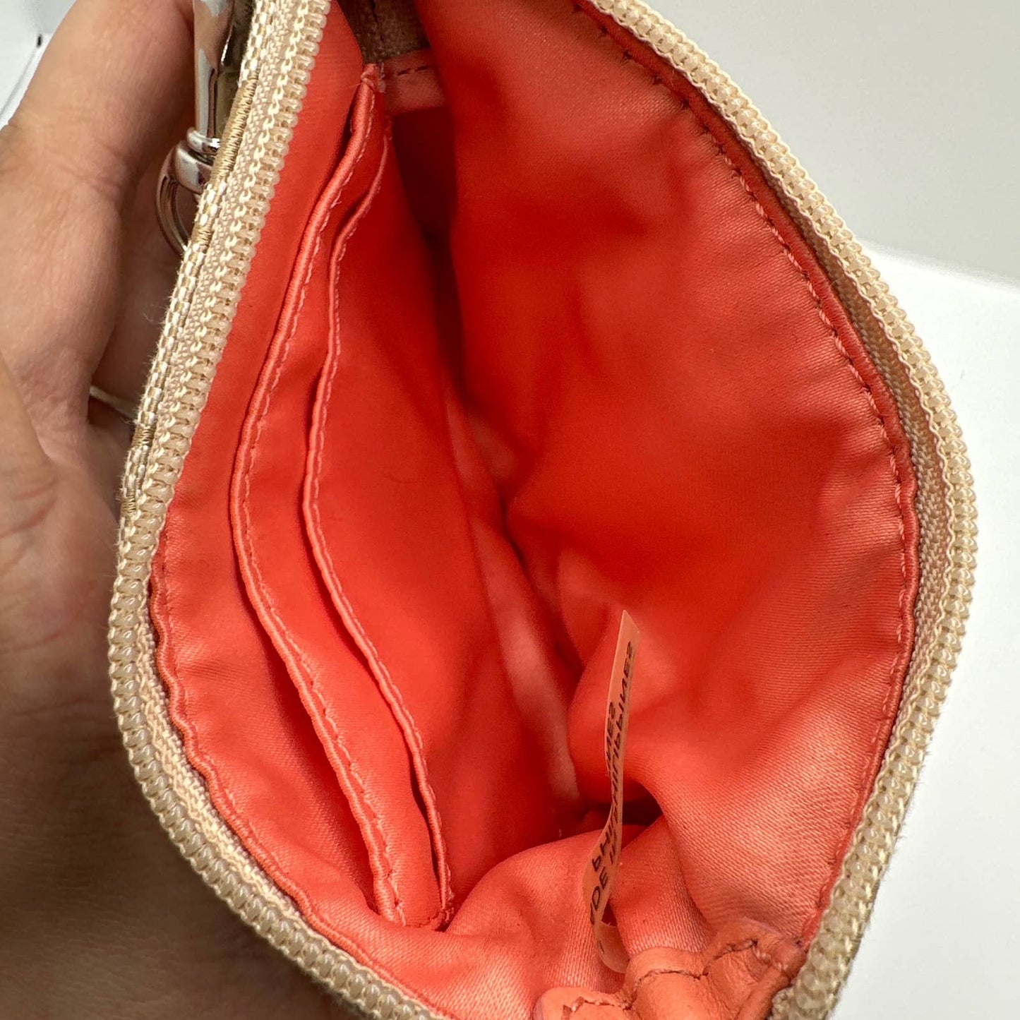 Preloved in great condition with normal wear on the exterior and interior. Please see all pictures. Zipper works perfectly. This wristlet has 2 card slots with extra space for other small objects. Ready to use wristlet.