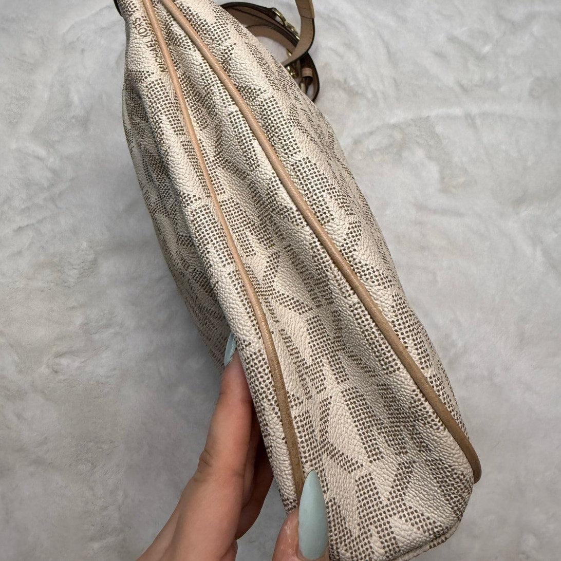 SALE Michael Kors Shoulder Bag Jet Set Monogram White Tan Signature Crossbody