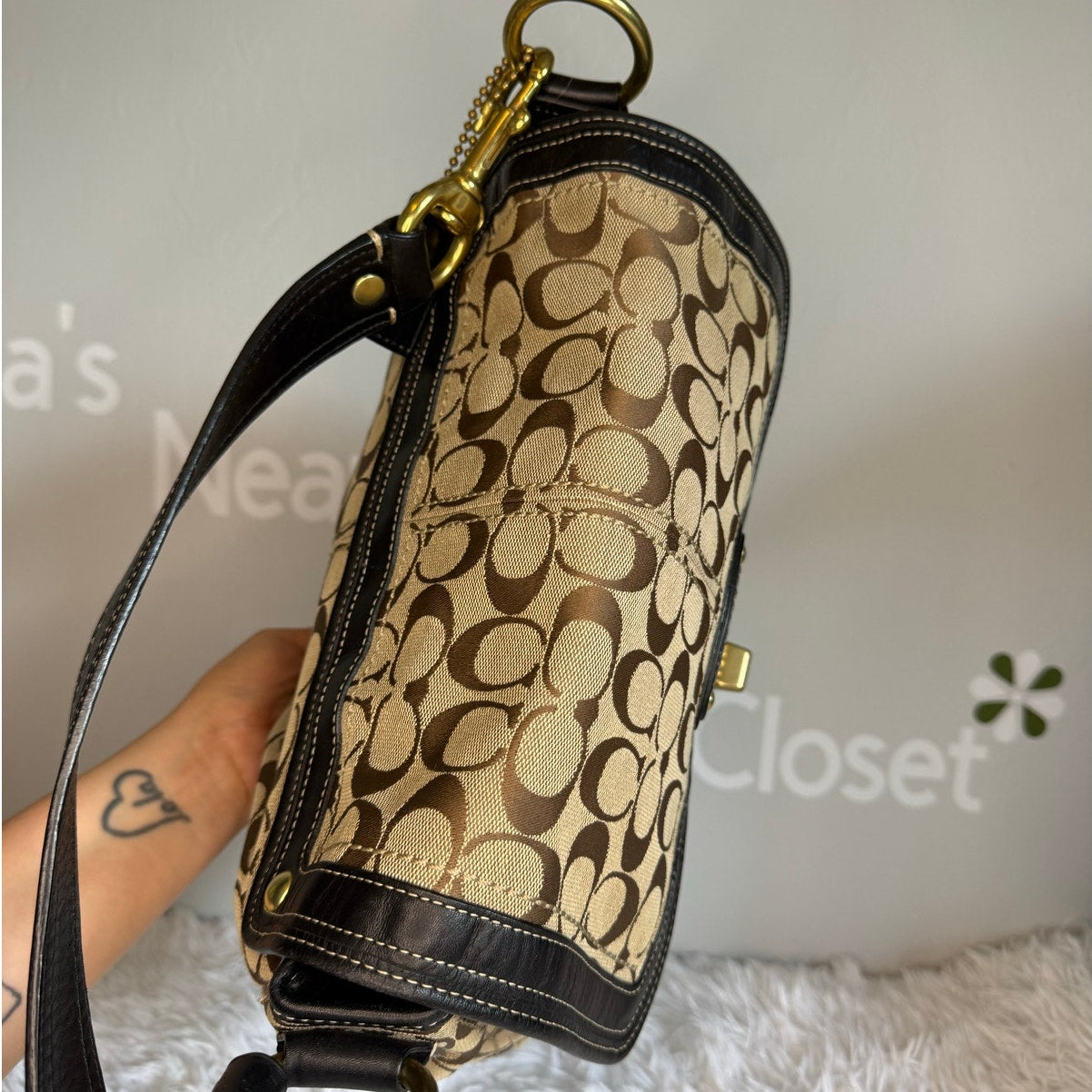 y2k COACH Black Brown Khaki Signature Legacy Flip Turnlock