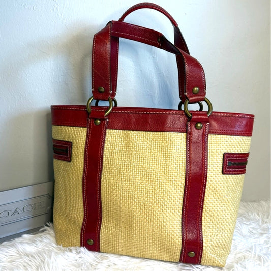 Vintage COACH y2k Red Natural Legacy Straw Tote Bag