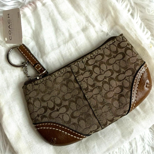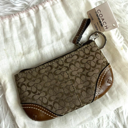 COACH Brown Signature Canvas Cardholder / Coin Purse with Keychain