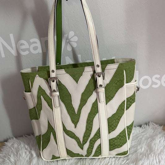 y2k Coach Vintage 2006 Green Zebra Strips Print Tote