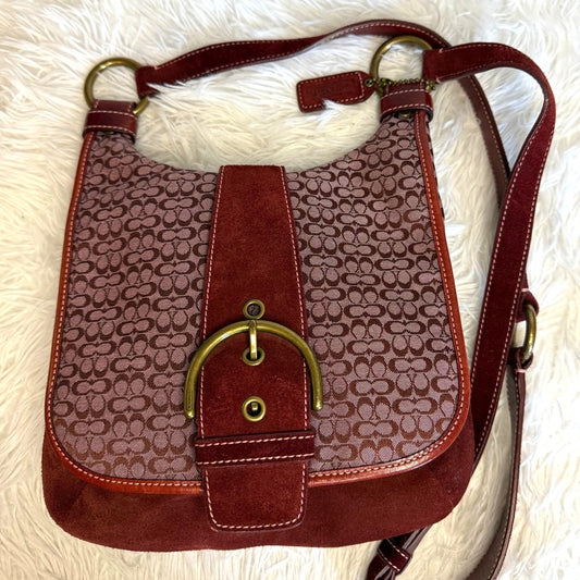 Vintage COACH y2k Red Soho Buckle Signature Suede Crossbody