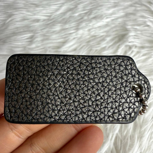 2" COACH Metallic Silver Black Fob Bag Charm Hang tag Hangtag