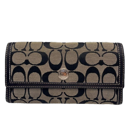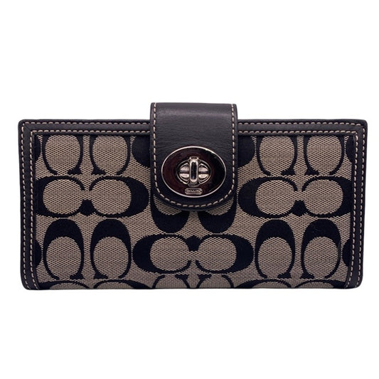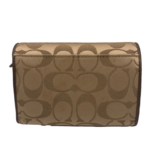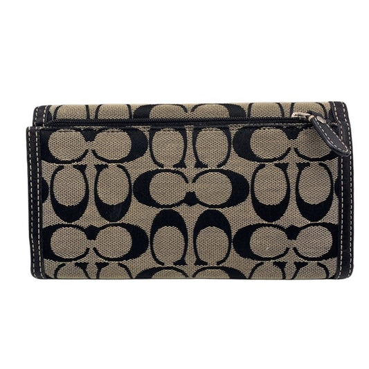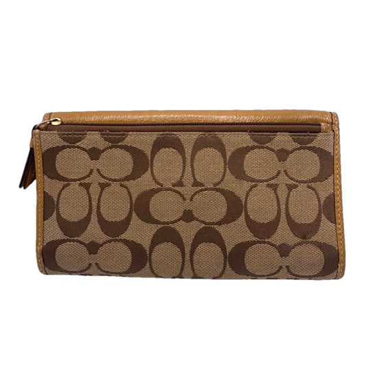 COACH Brown and Tan Signature Canvas Patent Leather Wallet