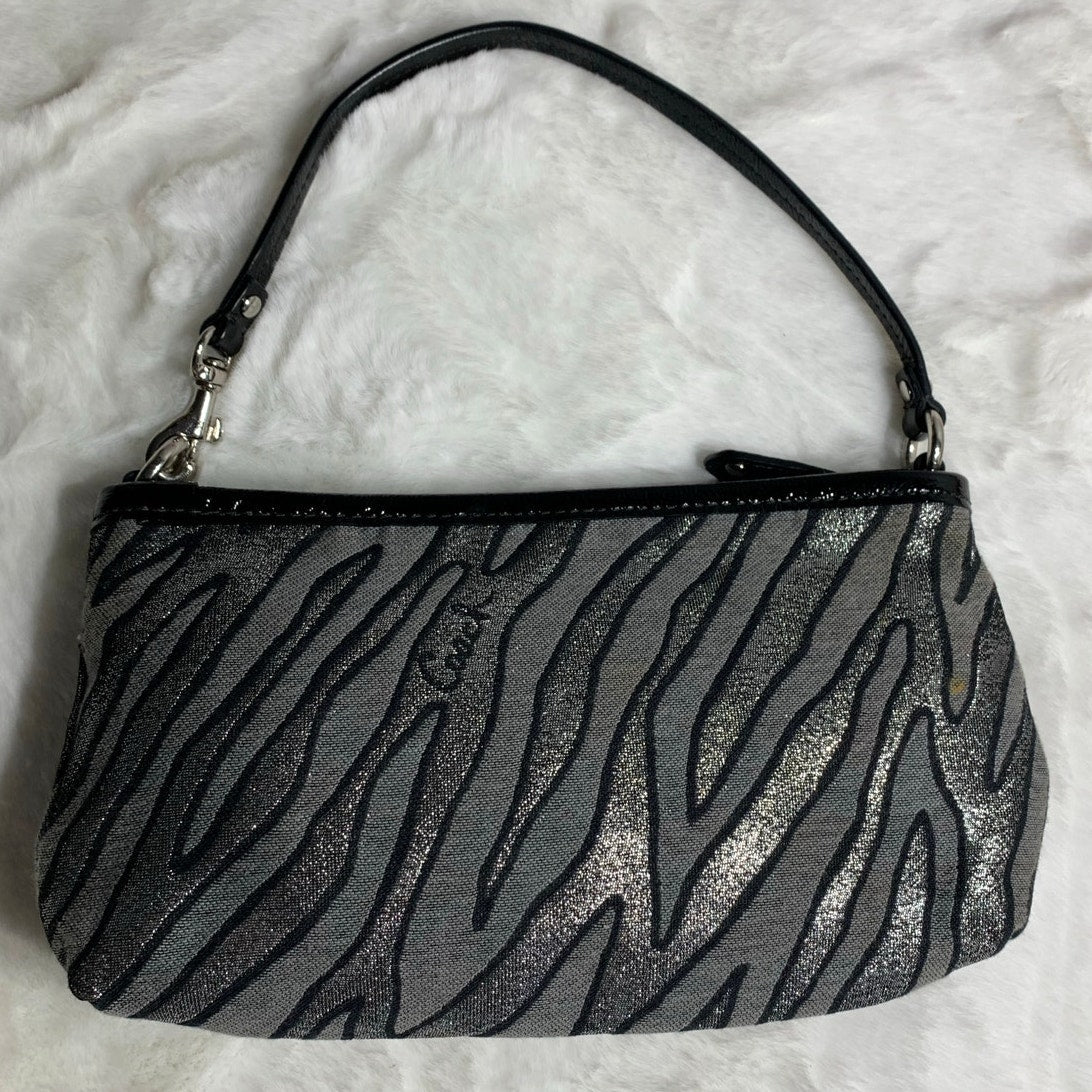 y2k COACH Zebra Silver Print Black Metallic Mini Purse / Wristlet
