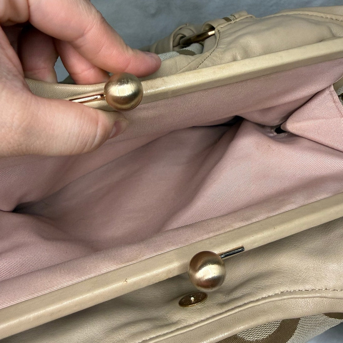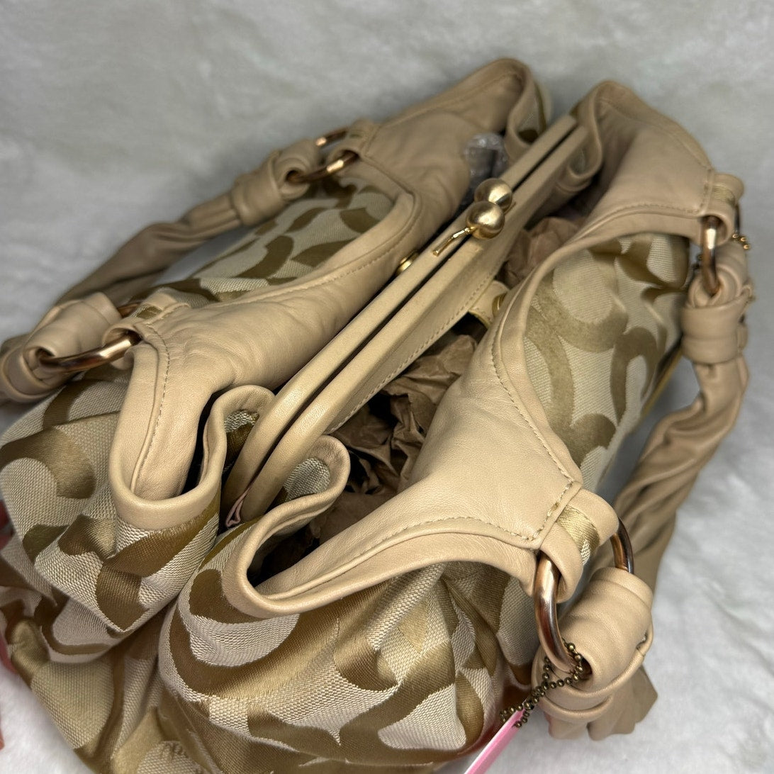 COACH Parker Hobo Handbag Kisslock Leather Canvas Bag Purse Shoulder Bag