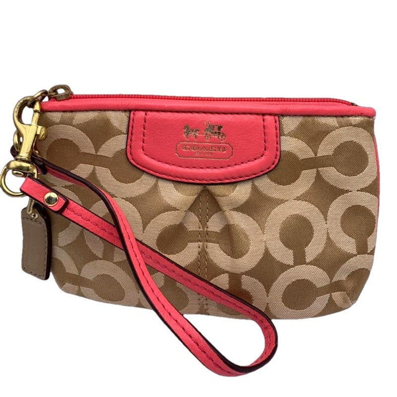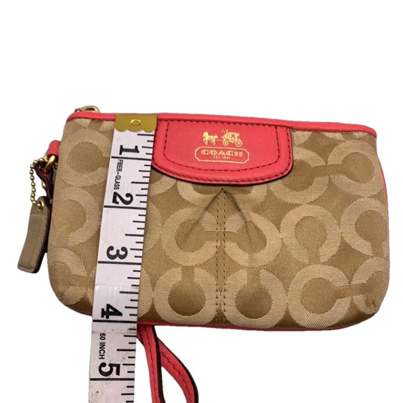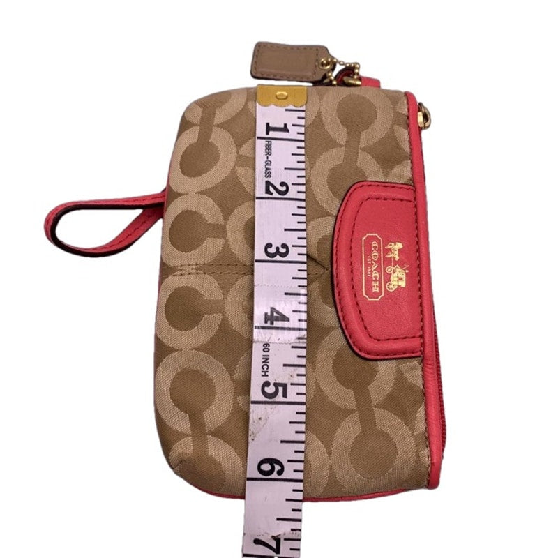 COACH Pink Tan Signature Canvas Wristlet