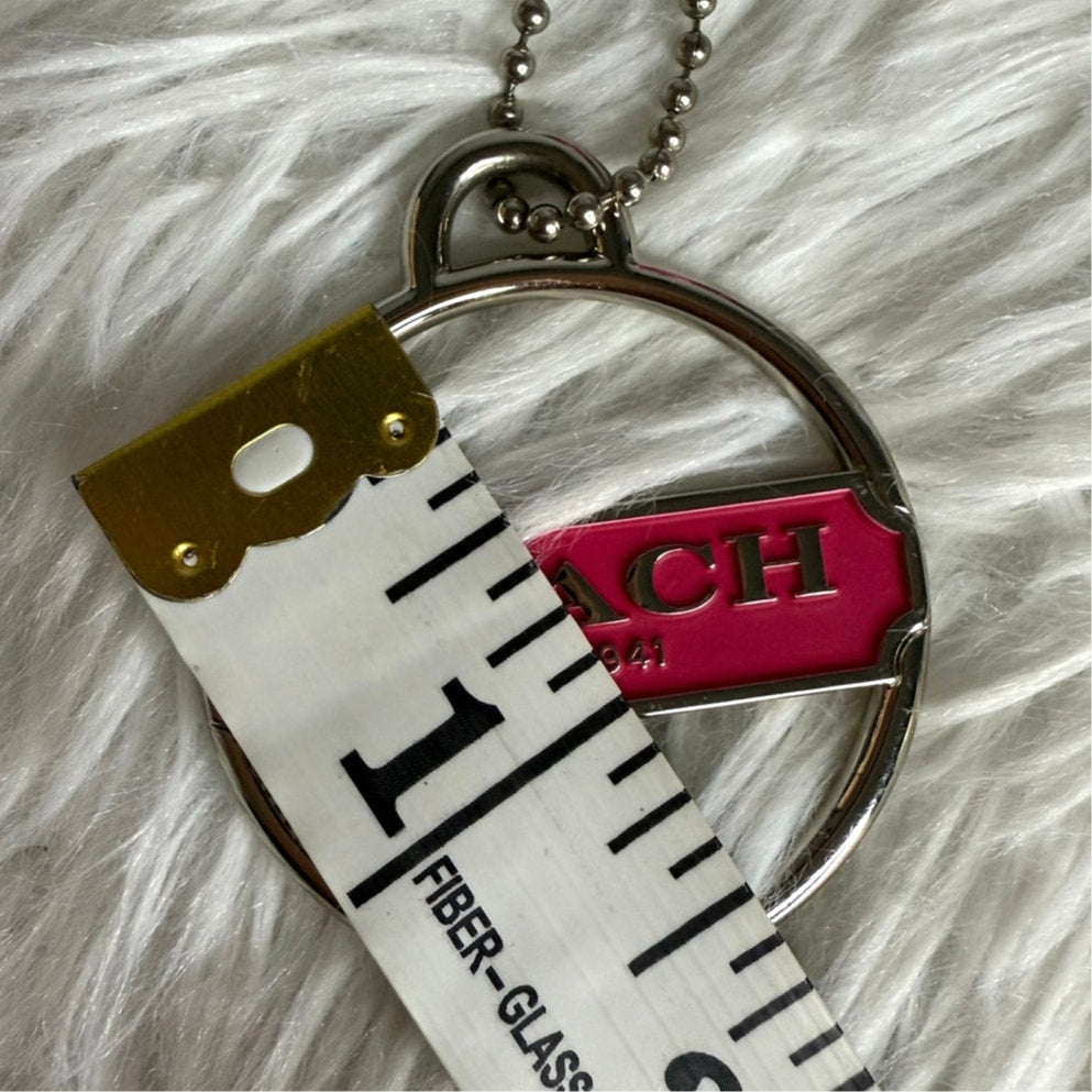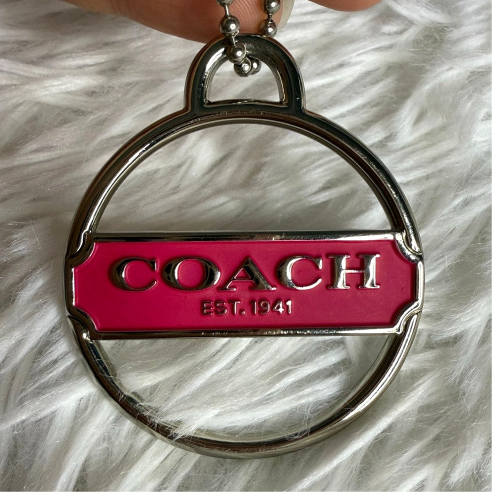 COACH Round Script Logo Silver Pink Nickel Metal Fob Bag Charm Hang tag