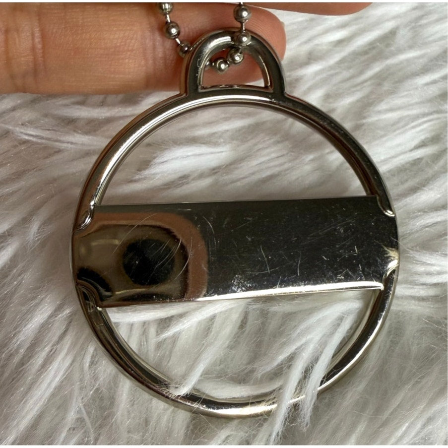 COACH Round Script Logo Silver Pink Nickel Metal Fob Bag Charm Hang tag Hangtag
