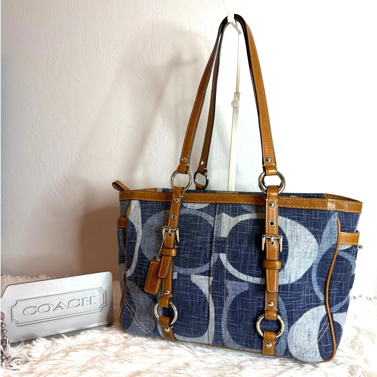 Coach y2k Denim Signature 'C' East West Gallery Tote Bag #F13810