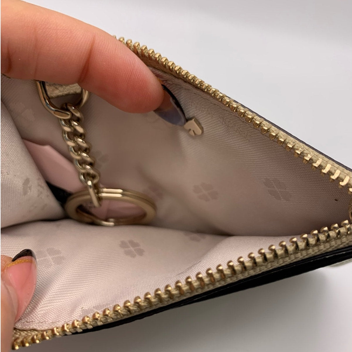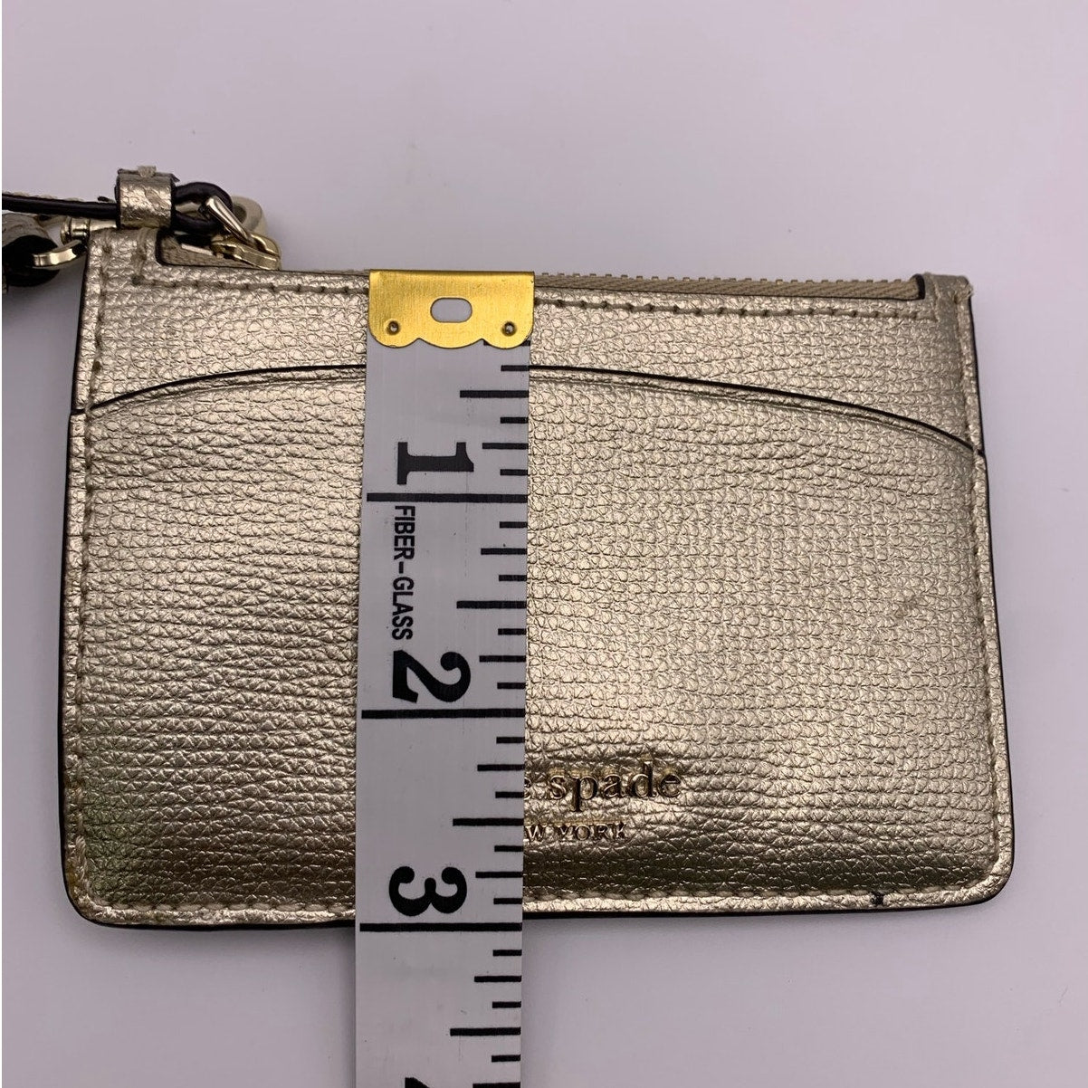 Kate Spade New York Gold Metallic Card Holder Coin Purse Keychain