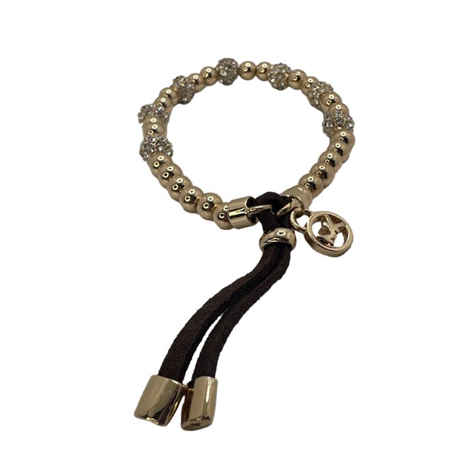 This gently worn Michael Kors bracelet features a delicate chain adorned with the iconic Michael Kors logo charm, offering a perfect balance of classic and modern aesthetics.