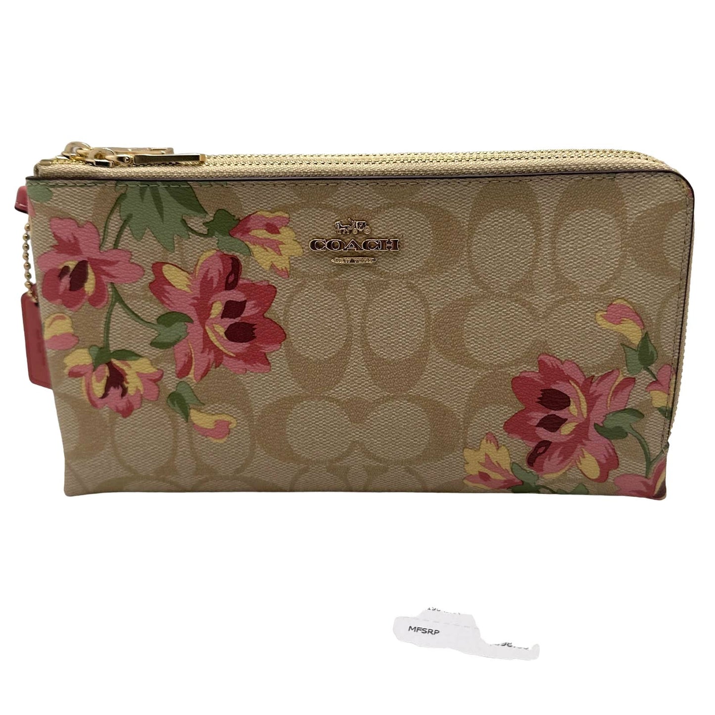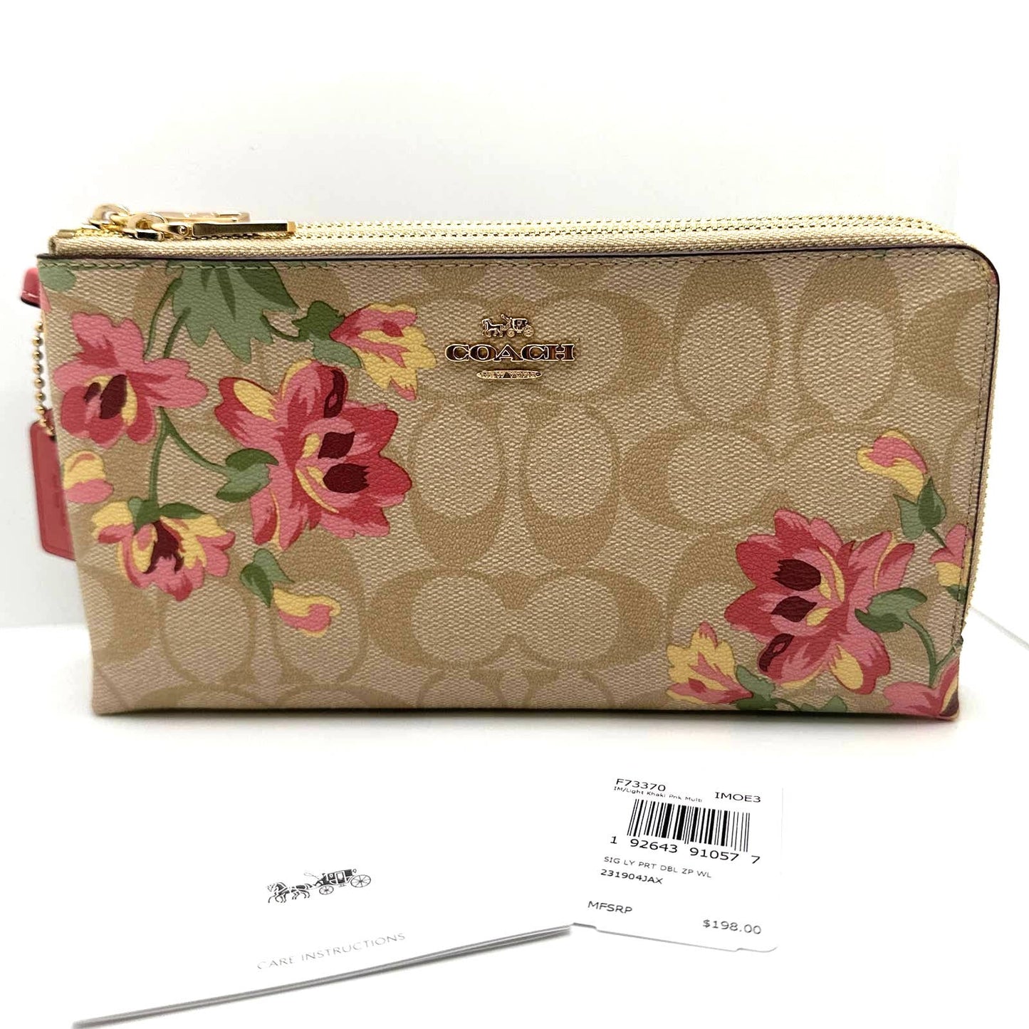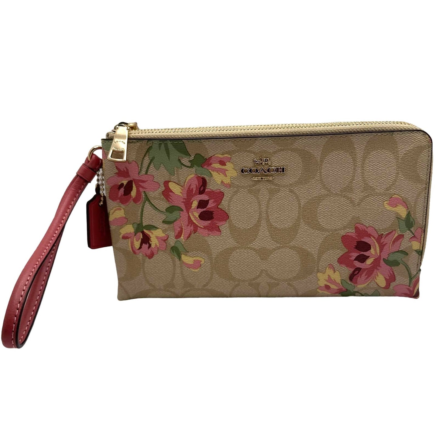 NWT COACH Signature Coated LILY Print Double Zip Wallet / Wristlet