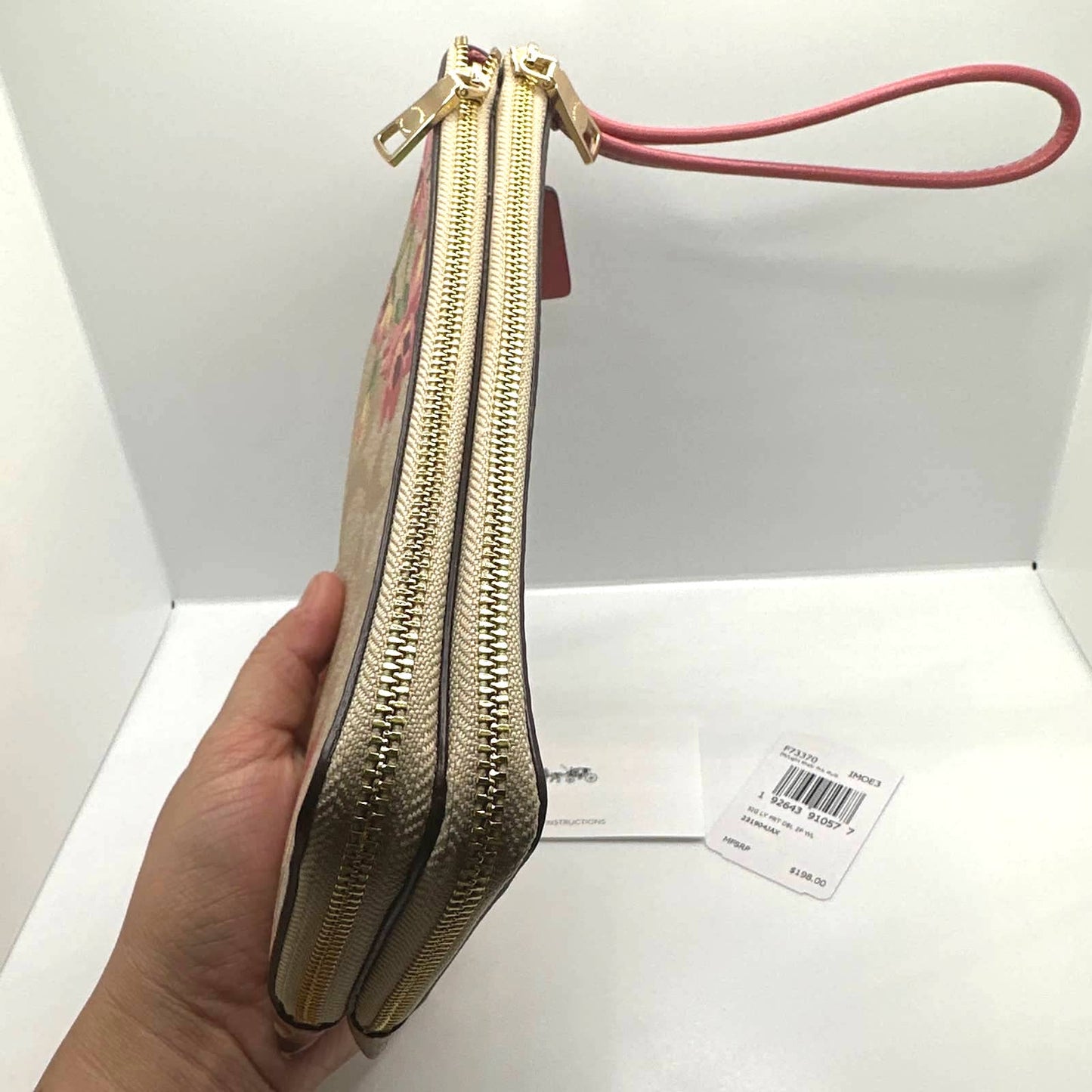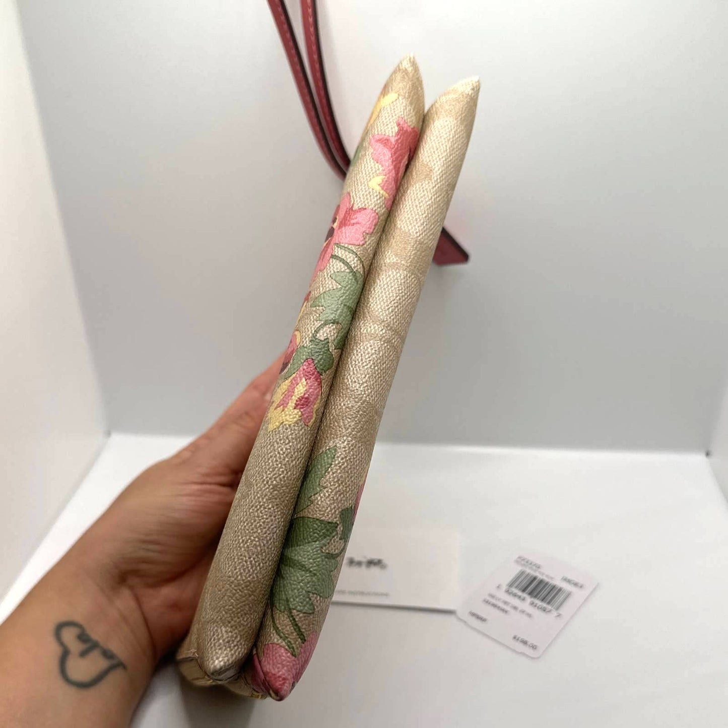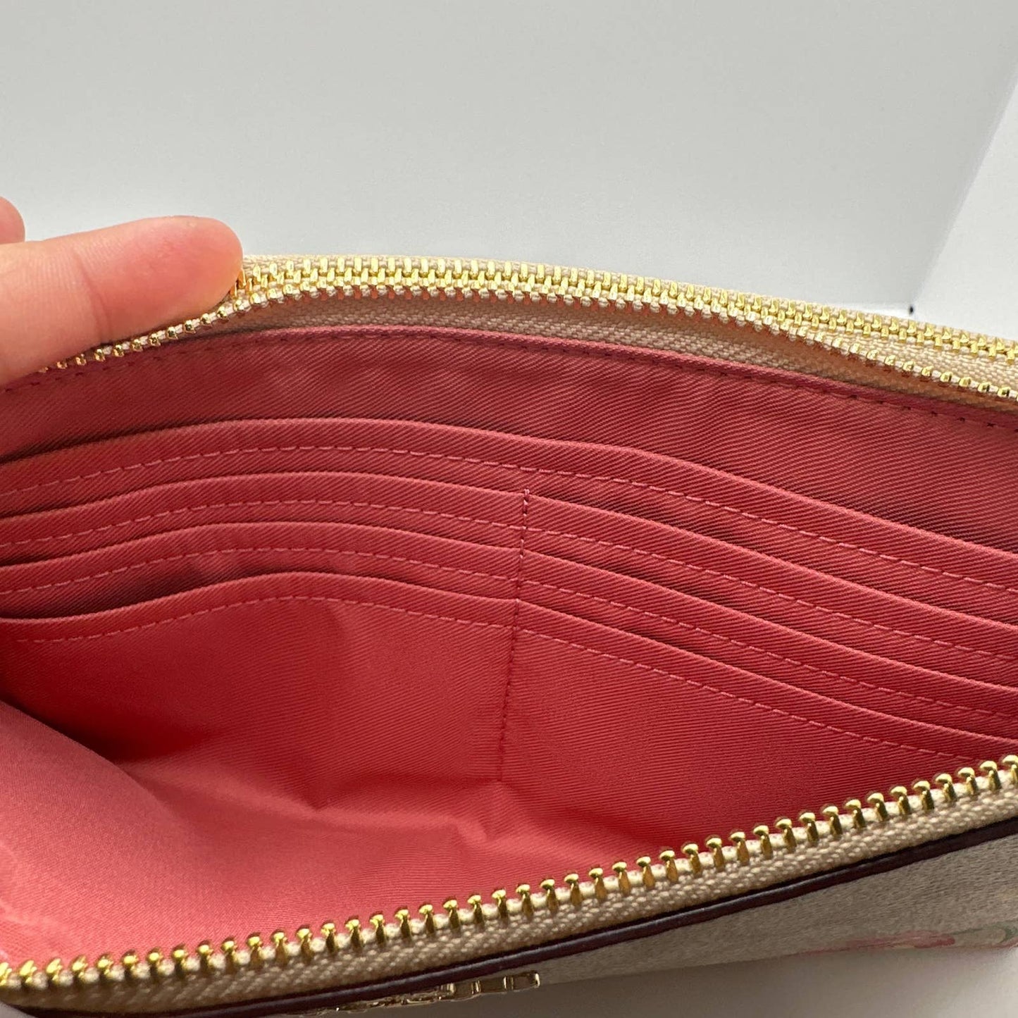 NWT COACH Signature Coated LILY Print Double Zip Wallet / Wristlet