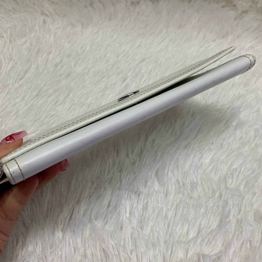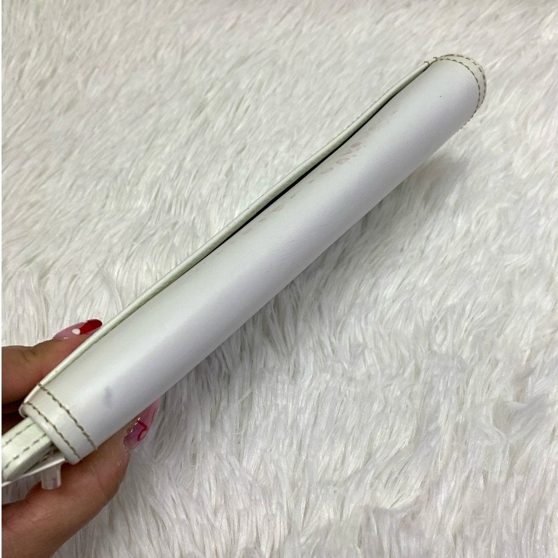 This is a new with tags wallet with yellow wear on the exterior and interior from storing. Please see all pictures. The exterior has color transfer on the front and back. The interior has yellow color transfer. Overall in good condition. Ready to be use as is.