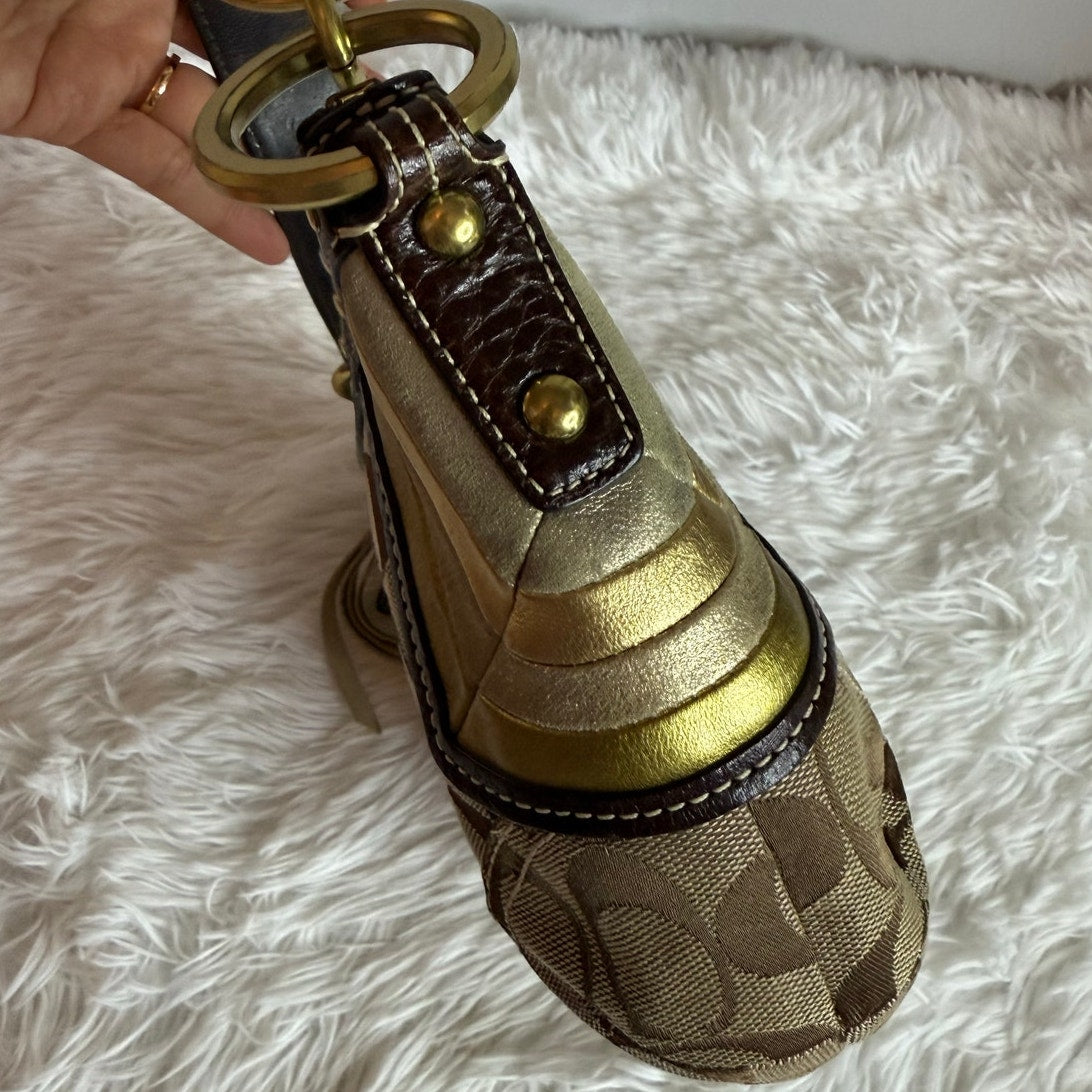 y2k Coach Vintage Brown Stud Gold Hobo Mini Purse Shoulder Bag