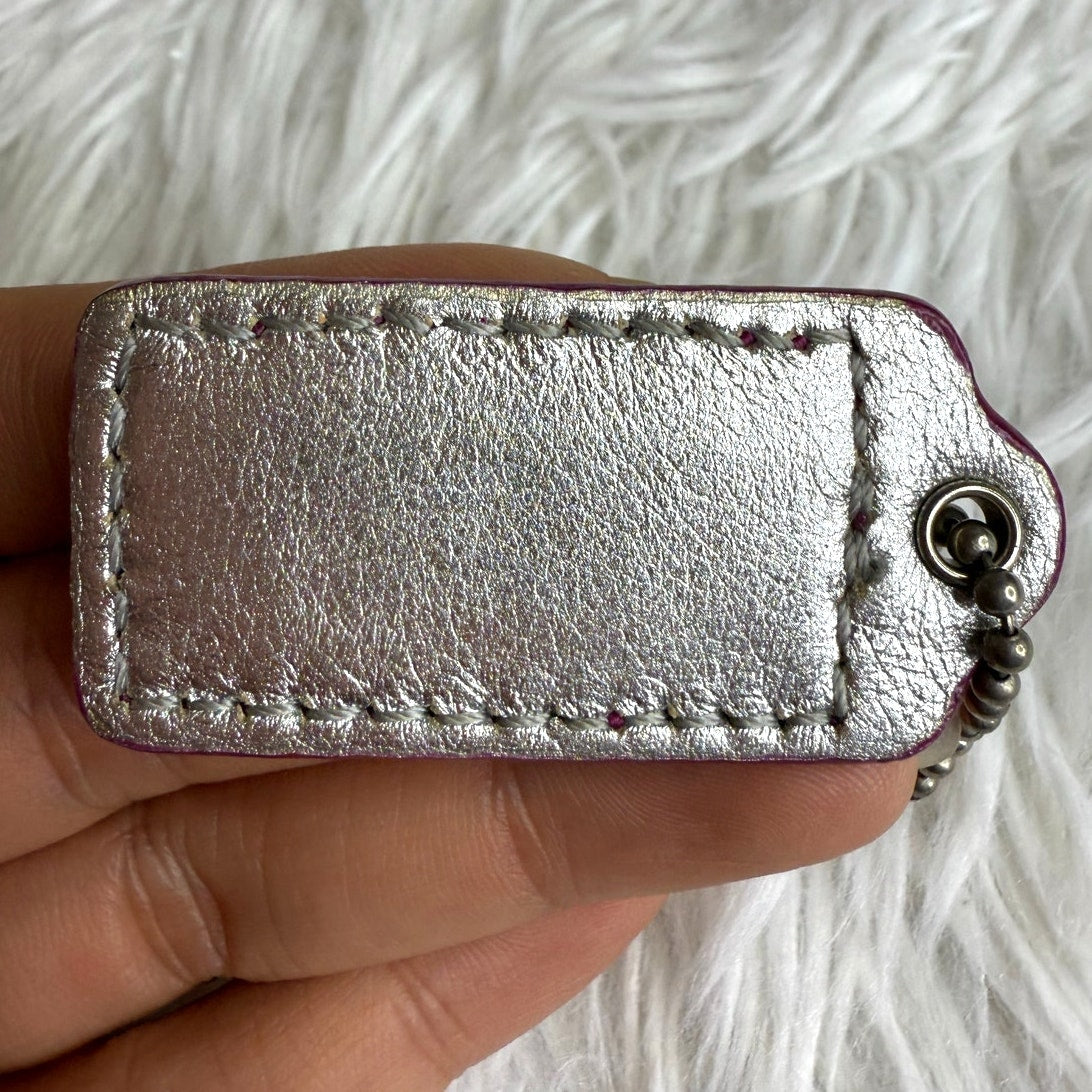 1.5" COACH Fuchsia Silver Fob Bag Charm Hang tag Hangtag