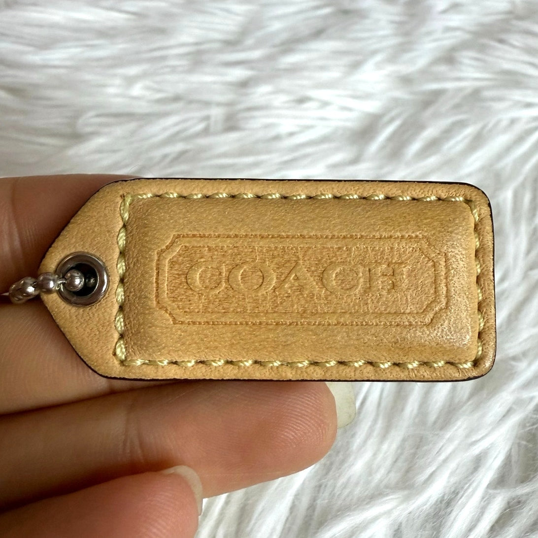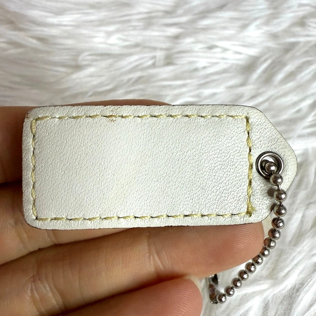 1.5" COACH Tan White Fob Bag Charm Hang tag Hangtag