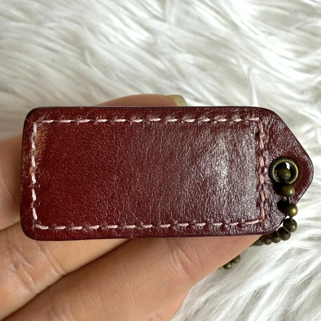 1.5" y2k COACH Vintage Suede Burgundy Fob Bag Charm Hang tag Hangtag