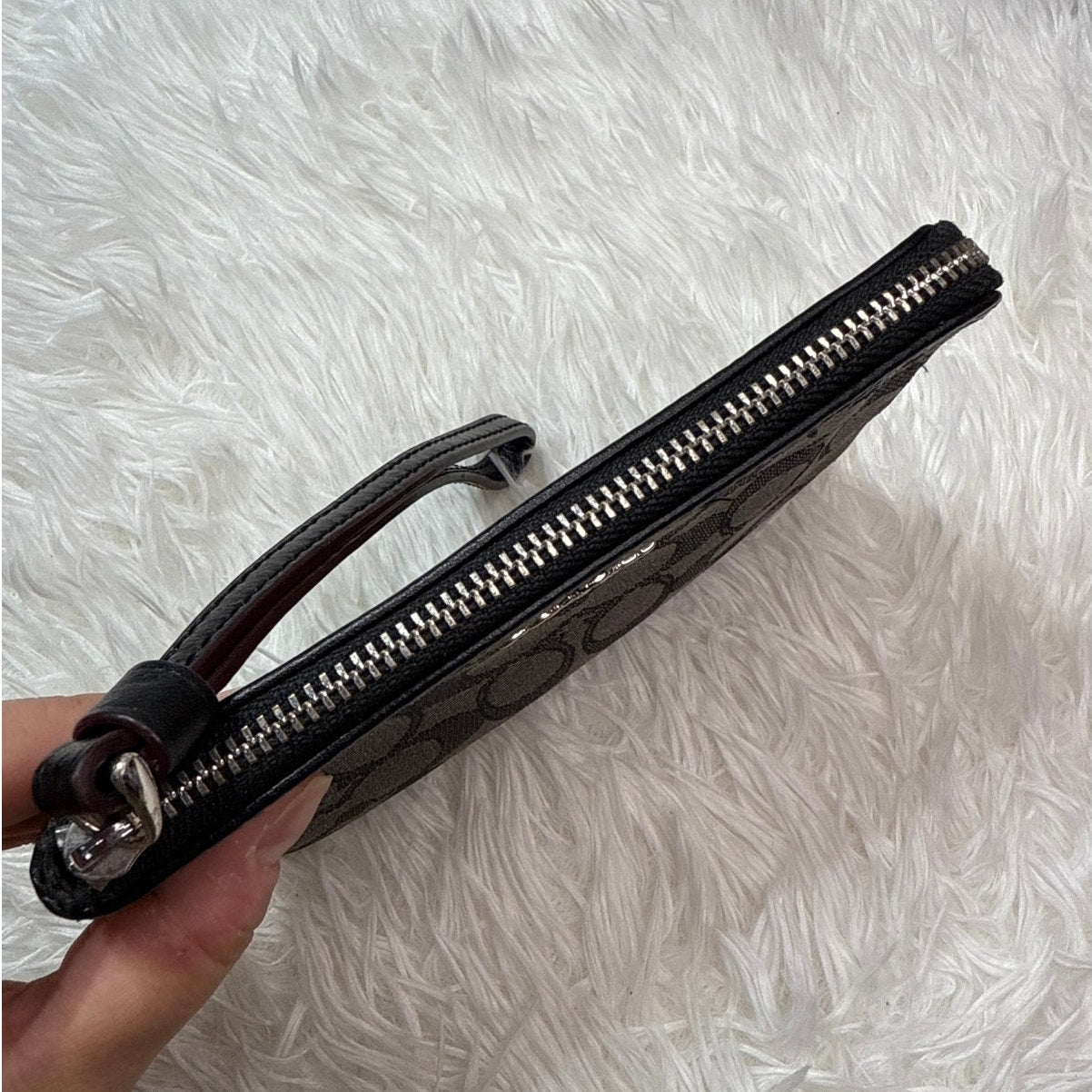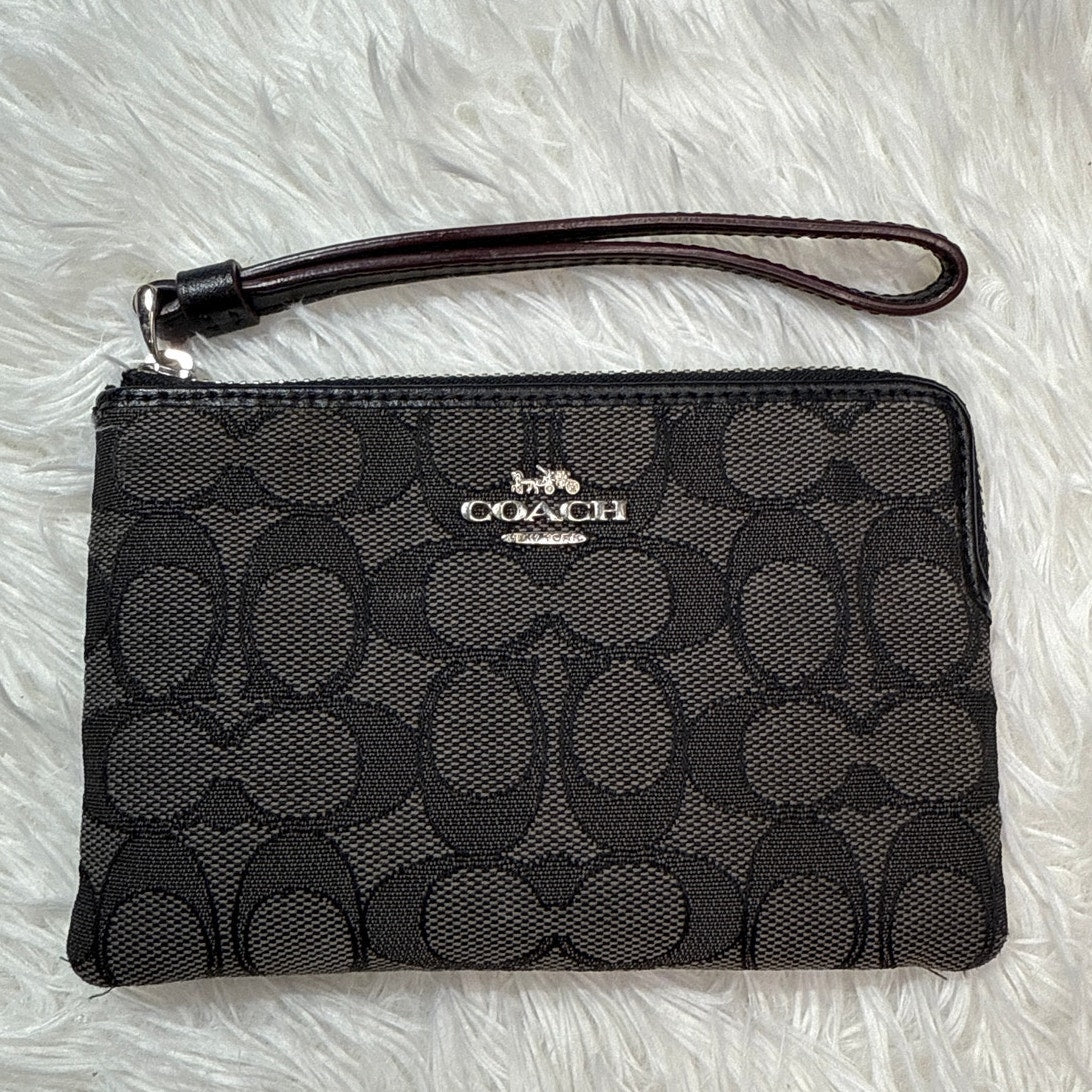 COACH Black Gray Signature Canvas Wristlet