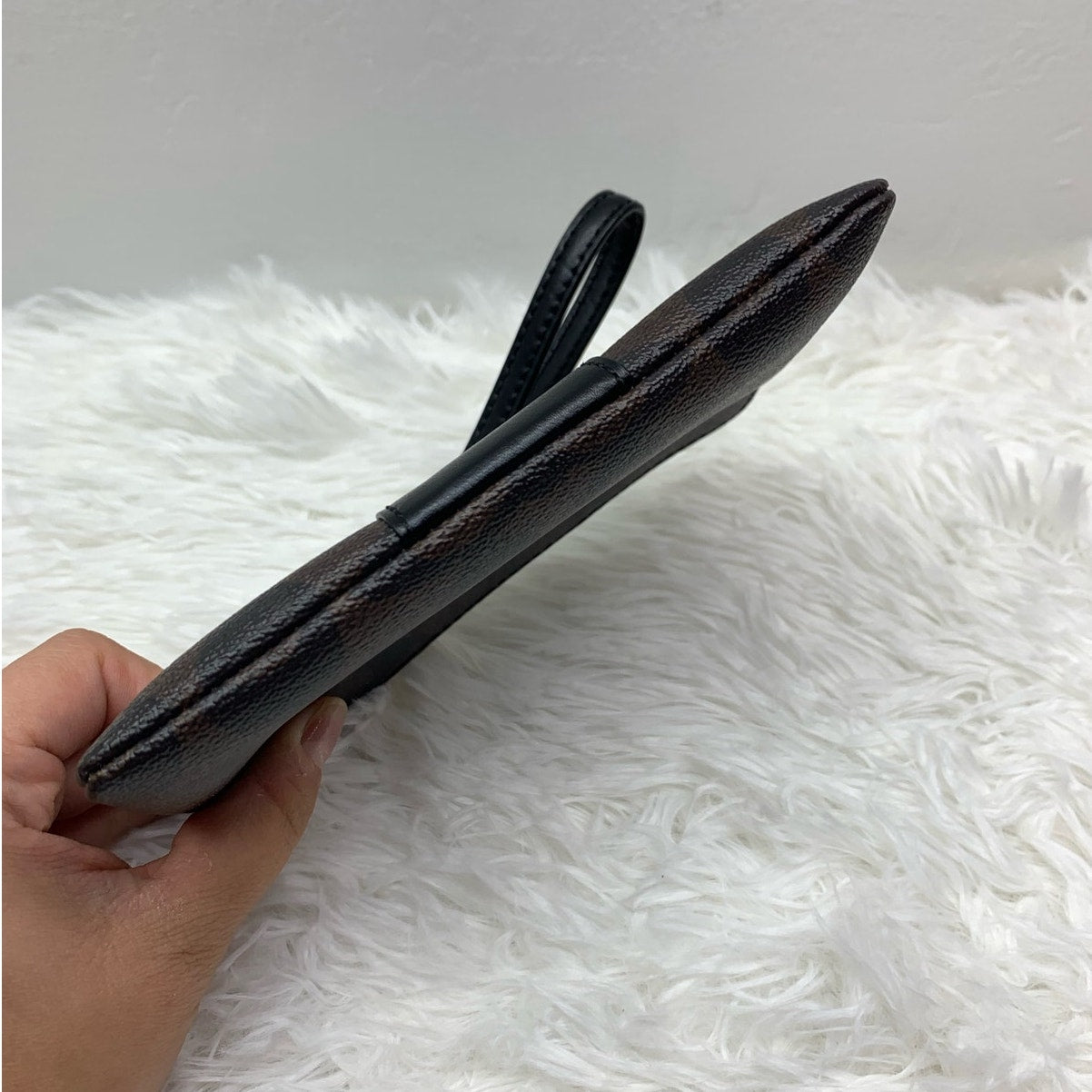 COACH Brown Coated Canvas Signature Wristlet