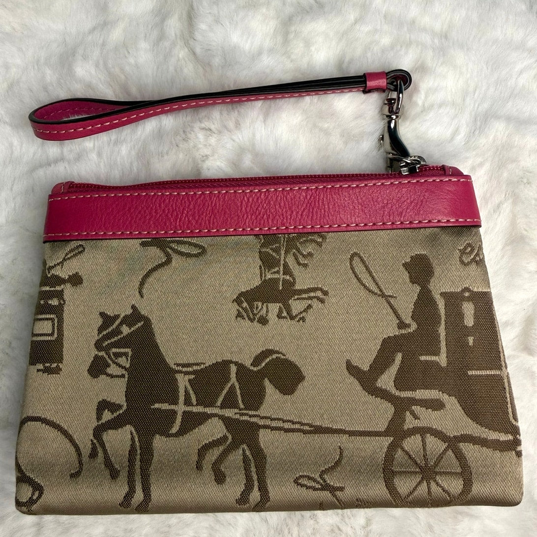 COACH Pink Brown Signature Carriage Canvas Wristlet