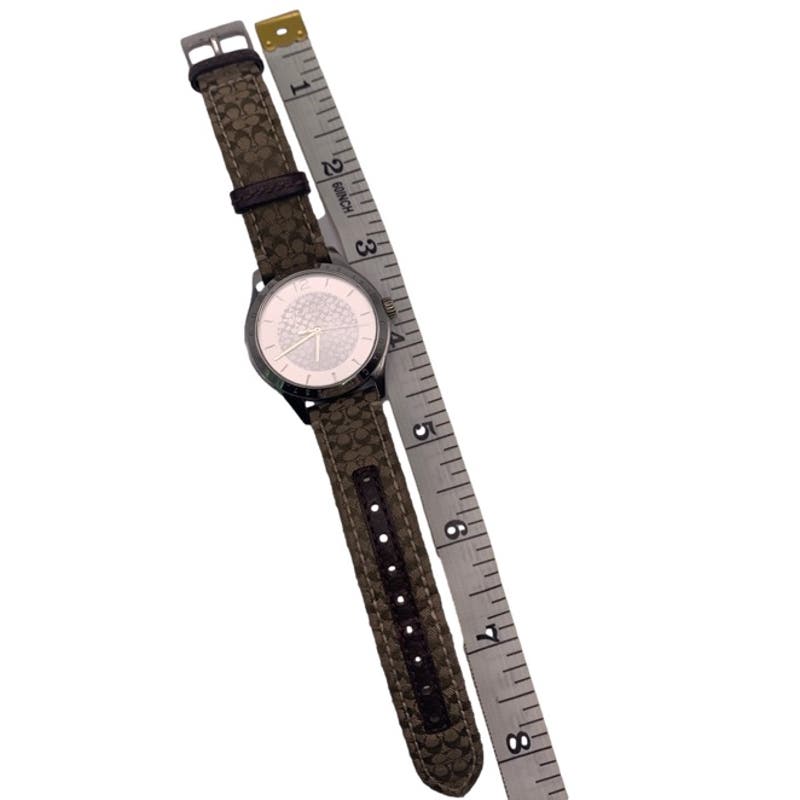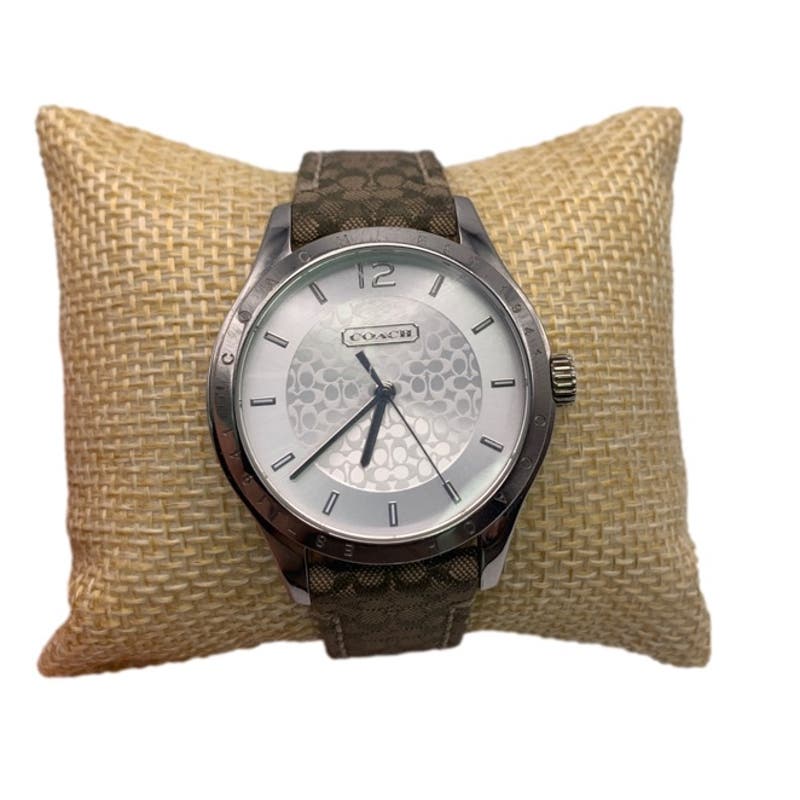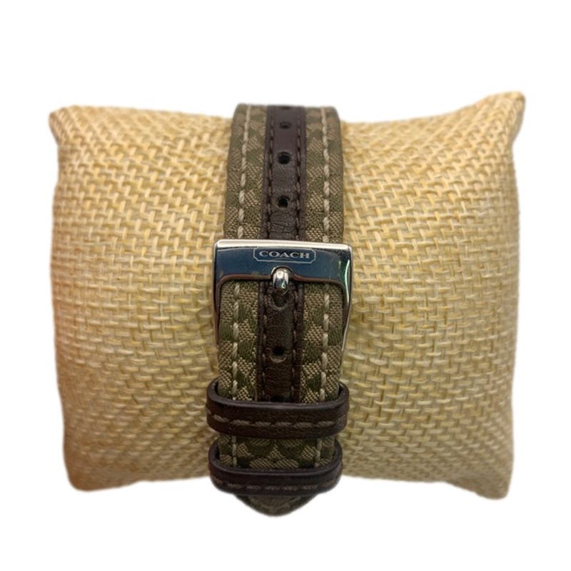 COACH Silver-tone Brown Canvas Ladies Wristlet Watch