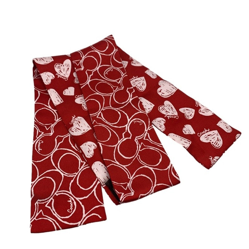 COACH Valentines Hearts Ponytail Ribbon Silk Skinny Scarf Scarves & Wraps Bag Twilly