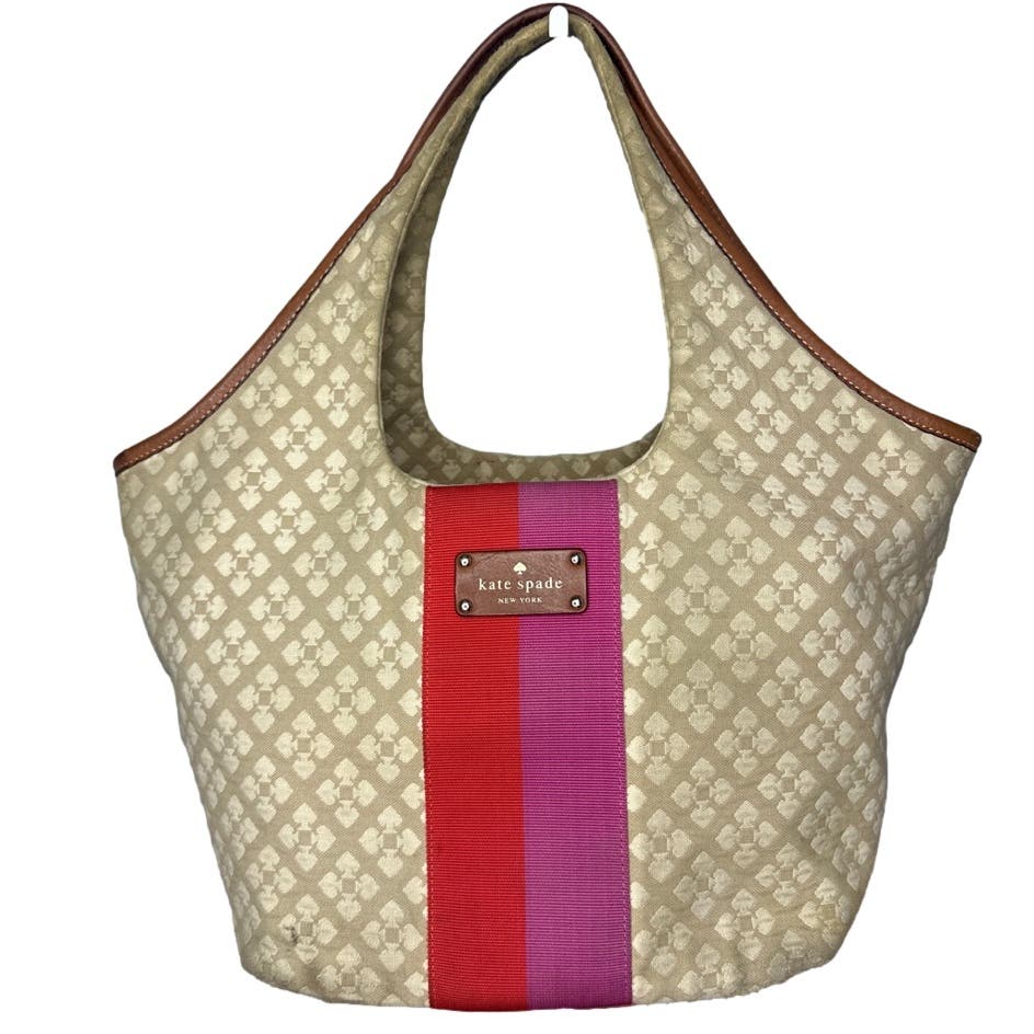 Kate Spade New York Brown, Tan, and Red Canvas Tote