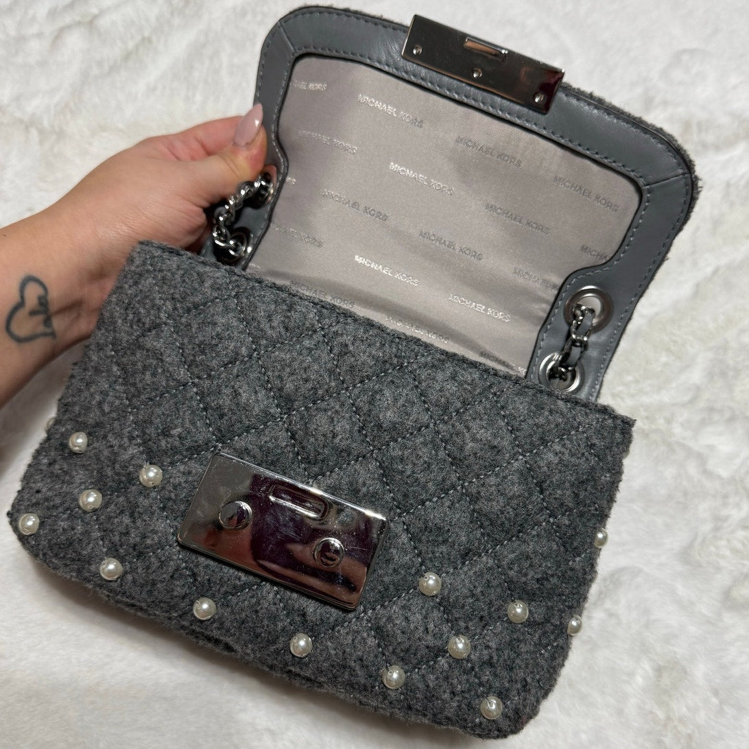 Michael Kors Pearl Studded Gray Shoulder Bag Crossbody