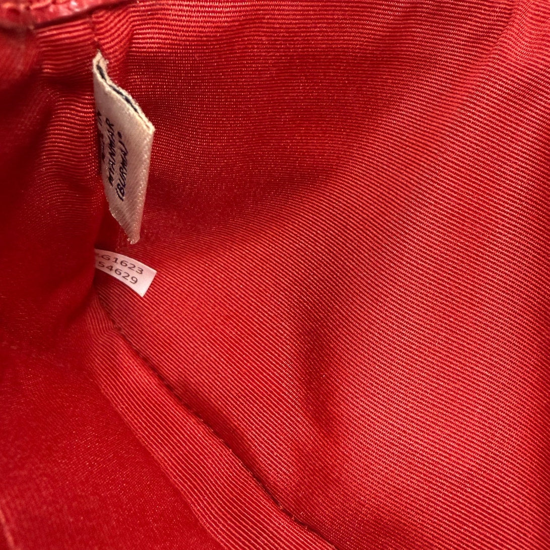 In excellent condition with little wear on the front exterior. Please see all pictures. The zipper works perfectly.