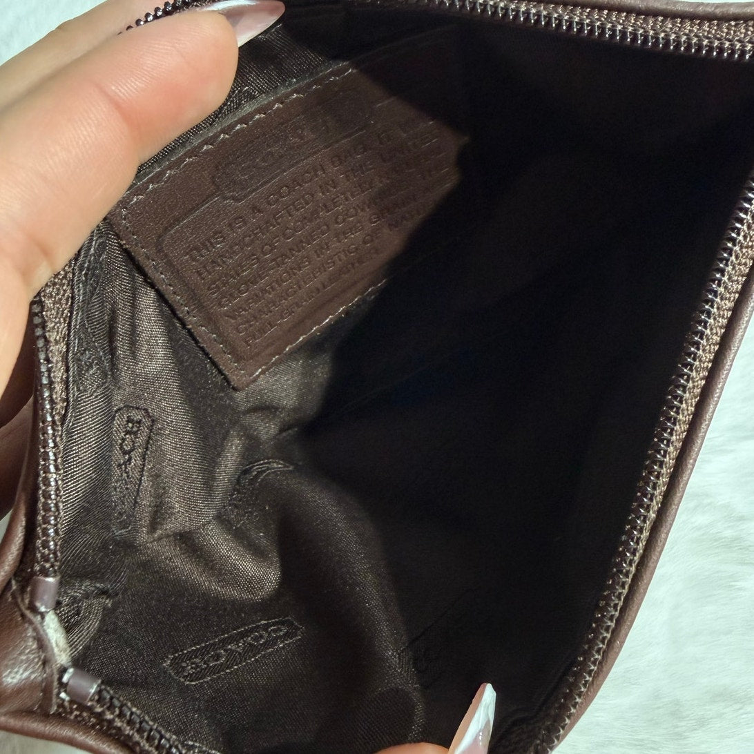 COACH VINTAGE MAHOGANY BROWN LEATHER FLAT SMALL COSMETIC BAG CASE POUCH 6990