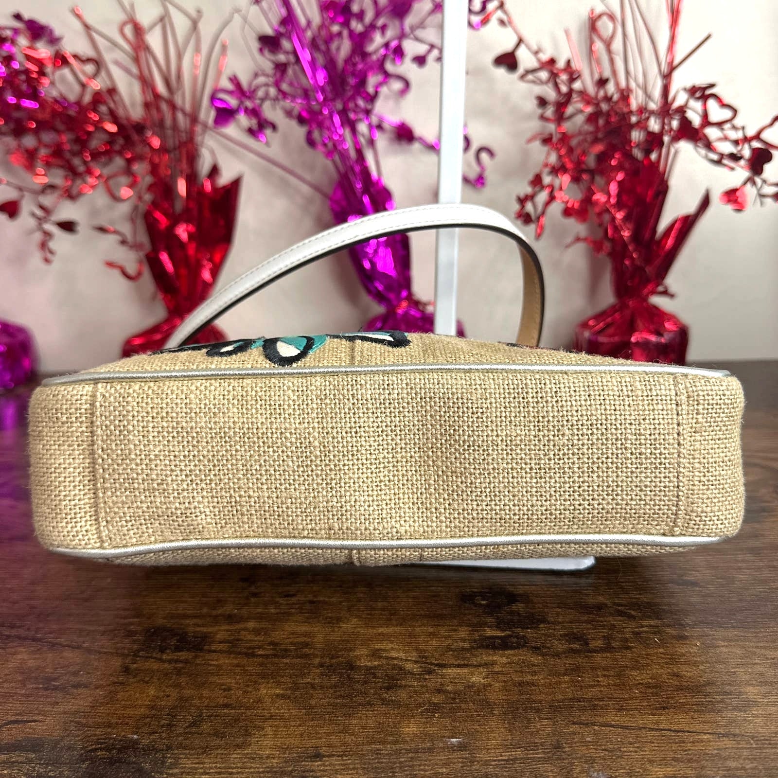 Beautiful, rare, vintage Coach purse. The cutest leather bees with crystals on bee's eyes. Leather pieces with embroidery flowers on the front exterior. The interior has a small spot underneath the creed. The clip on the side does not remove or open. Will Remain in spot. Preloved in great condition with normal wear on the exterior and interior. Please see all pictures. Ready to be used.