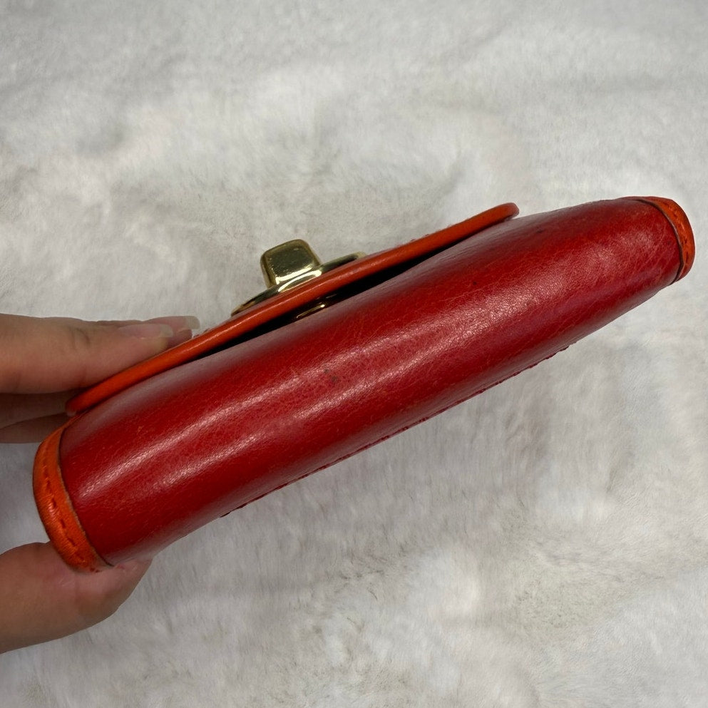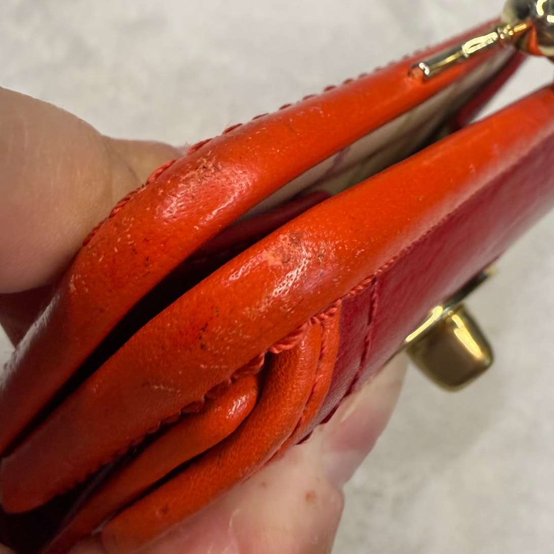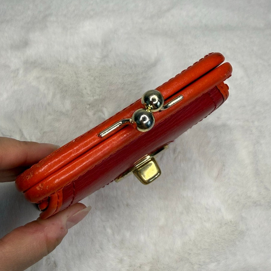 Preloved - has some corner wear and bill wear shown on the pictures. The front exterior has a few black spots. All can be seen in pictures. Prefect as an every day wallet.